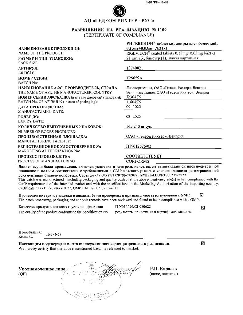 Бренд: Ригевидон