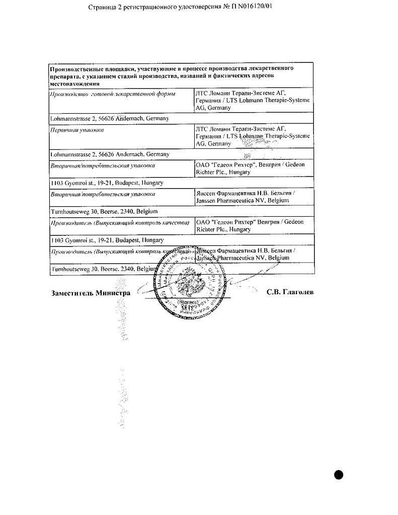 Производитель: ЛТС Ломанн Терапи-Зистеме АГ/Гедеон Рихтер, Германия/Венгрия