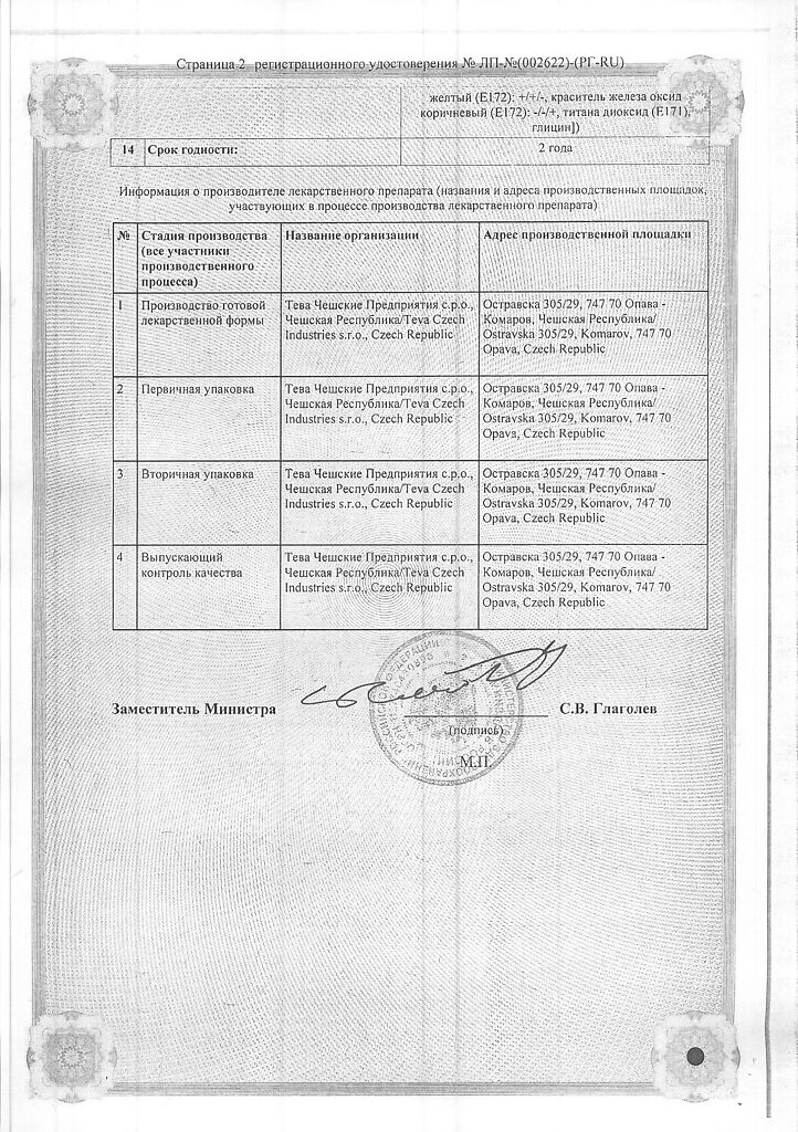 Производитель: Тева Чешские Предприятия с.р.о., Чешская Республика