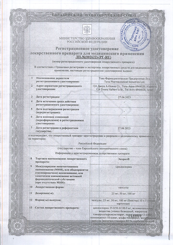 • 📒 Подробная инструкция по применению Экорал капсулы 50 мг 50 шт