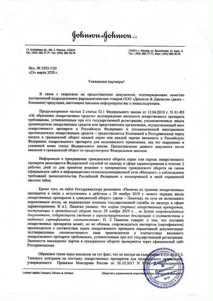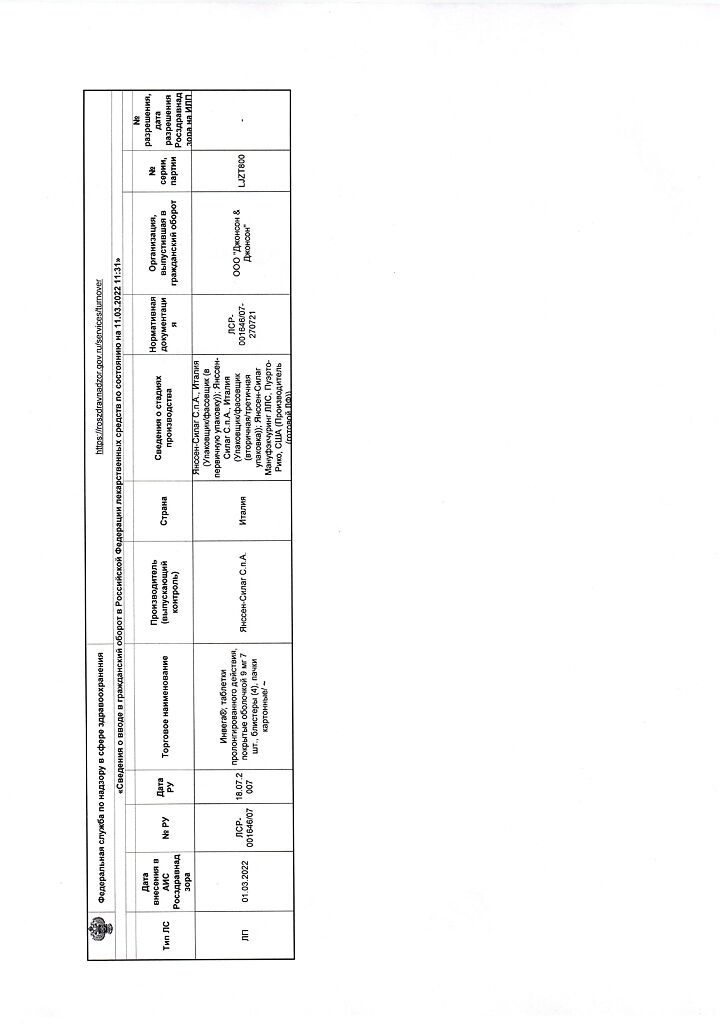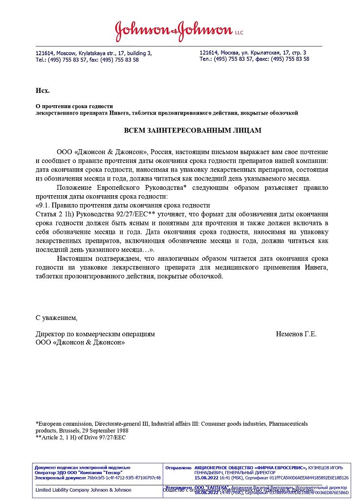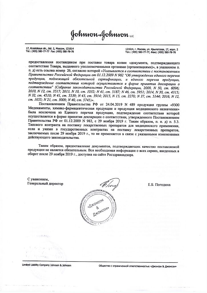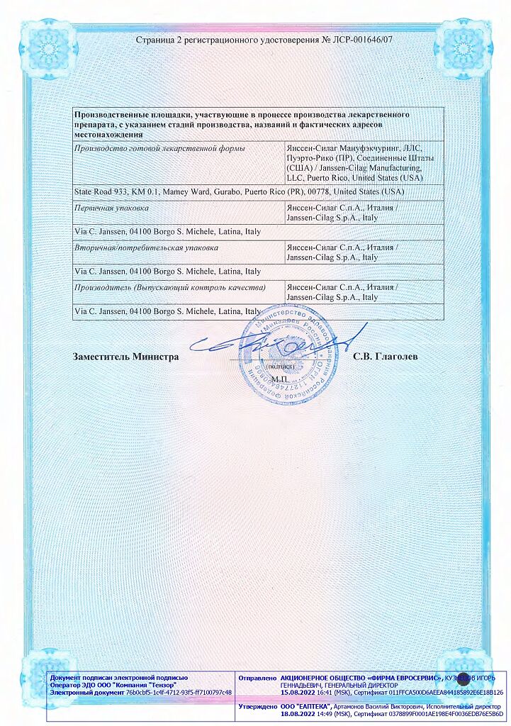 Производитель: Янссен Фармацевтика Н.В, Бельгия
