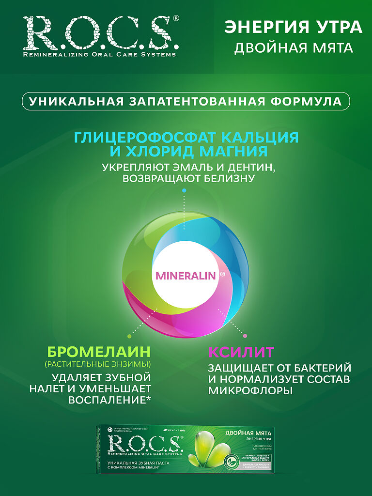 • 🏪 Купить R.O.C.S. Зубная паста Двойная мята 74 г 1 шт можно на сайте и в наших аптеках в Тынде