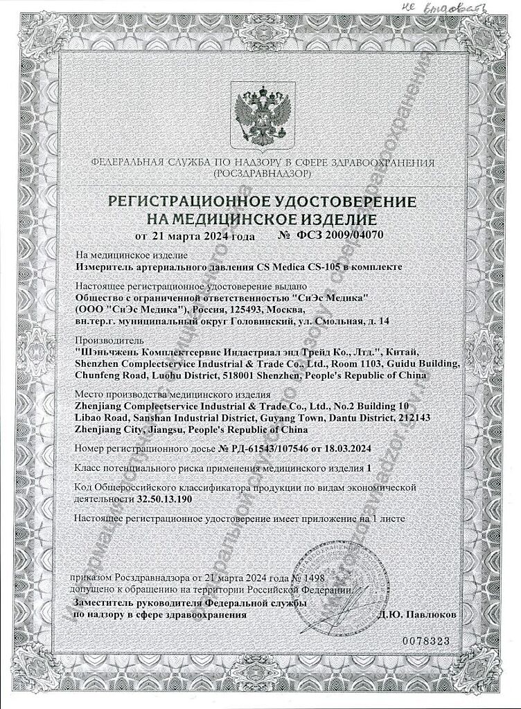 Производитель: СиЭс Медика, Китайская Народная Республика