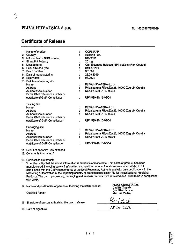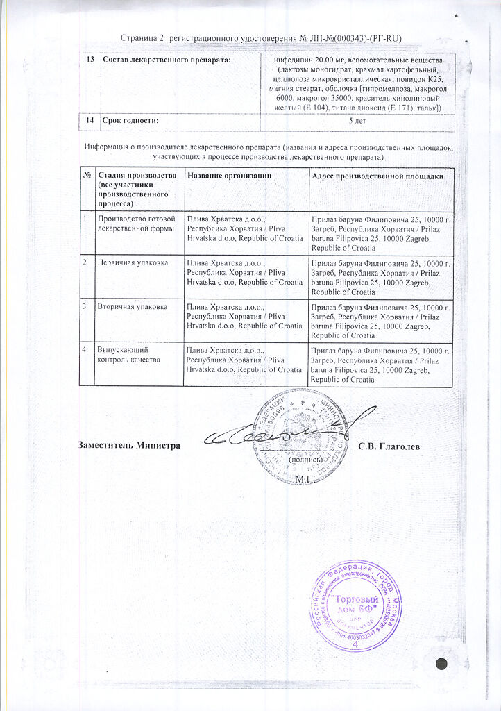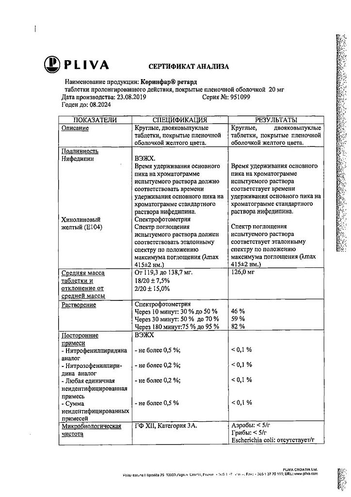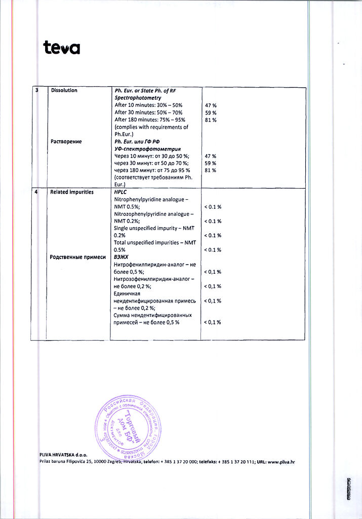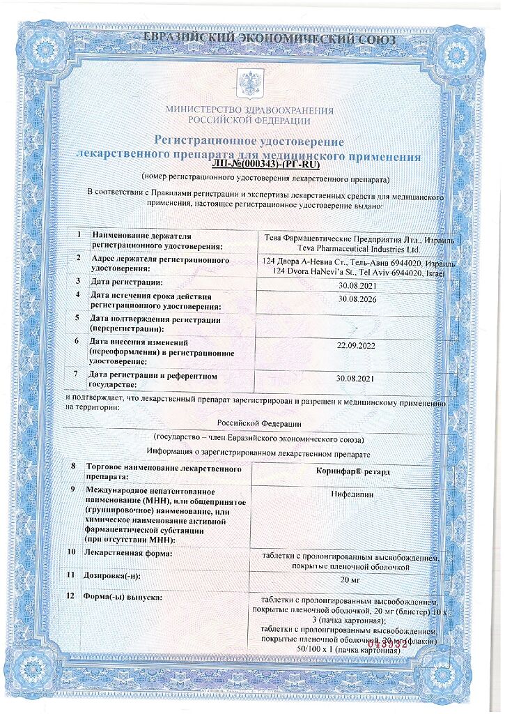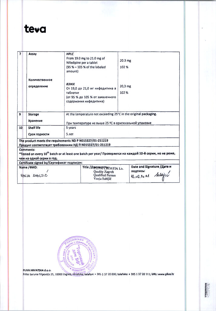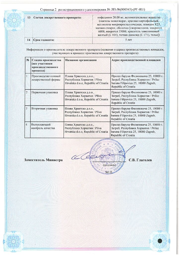Действующее вещество: Нифедипин