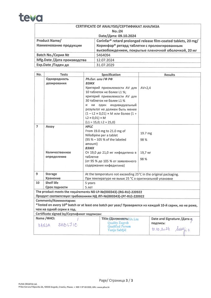 Производитель: Плива Хрватска д.о.о., Хорватия