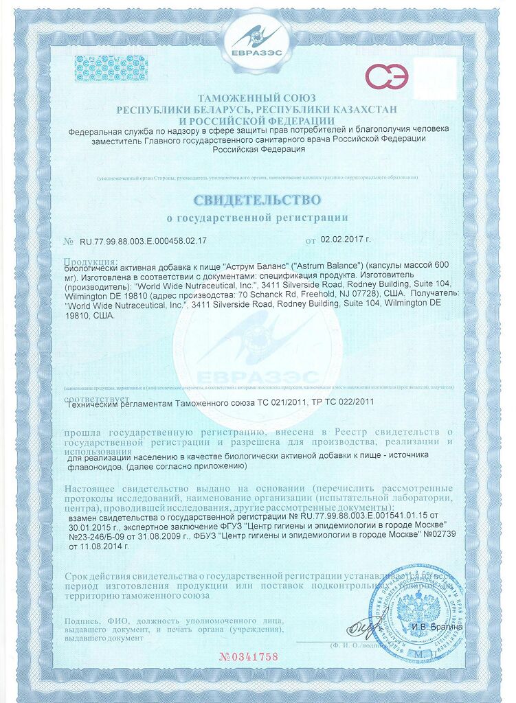 Документы Аструм Баланс (Astrum Balance) капсулы массой 600 мг 90 шт