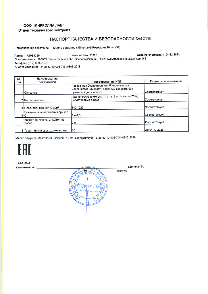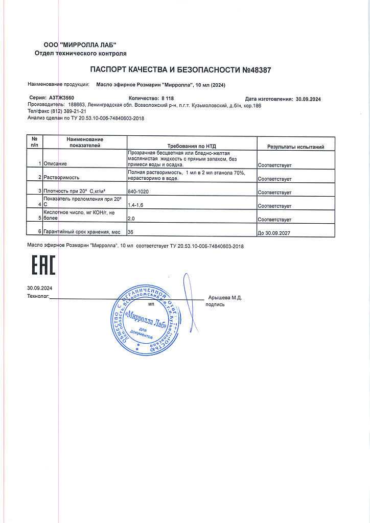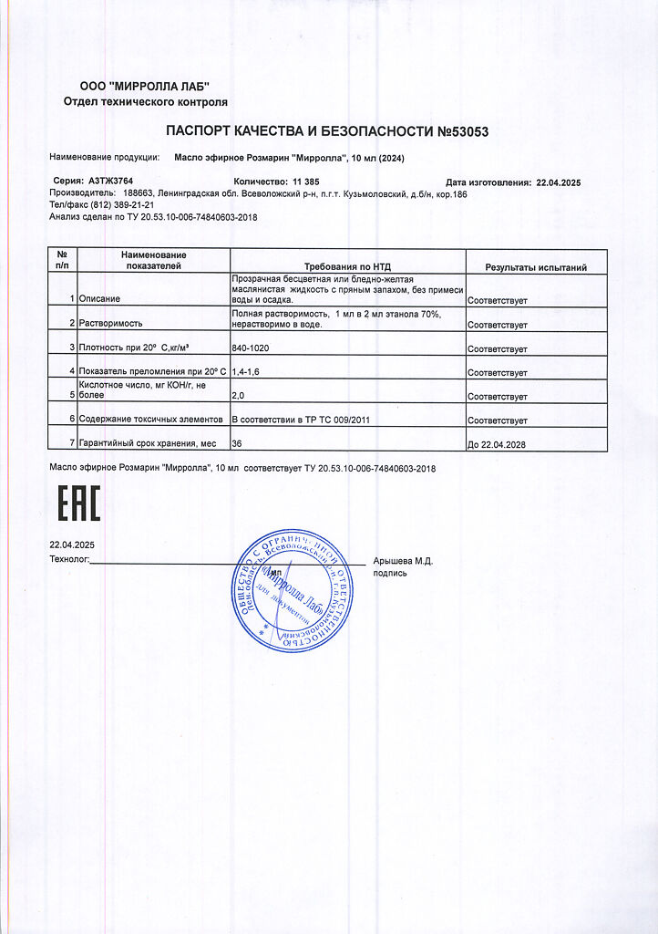 Производитель: Мирролла Лаб, Россия