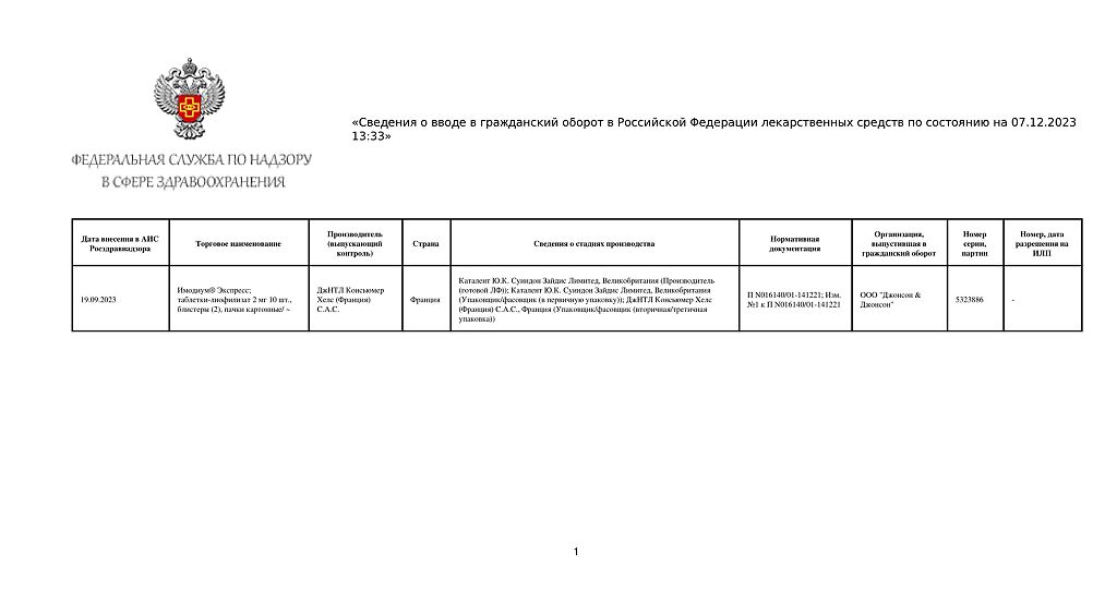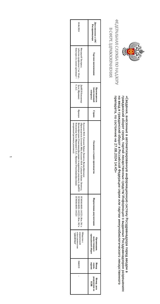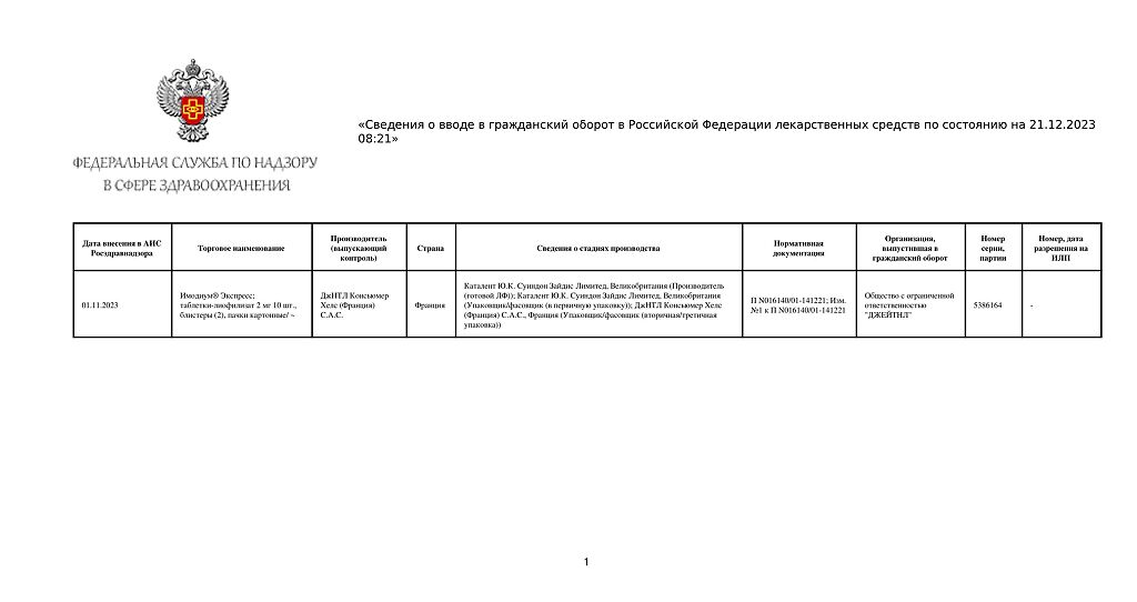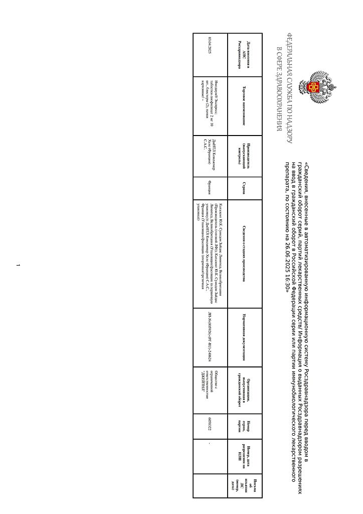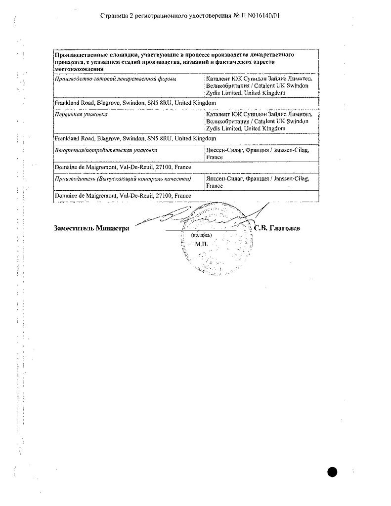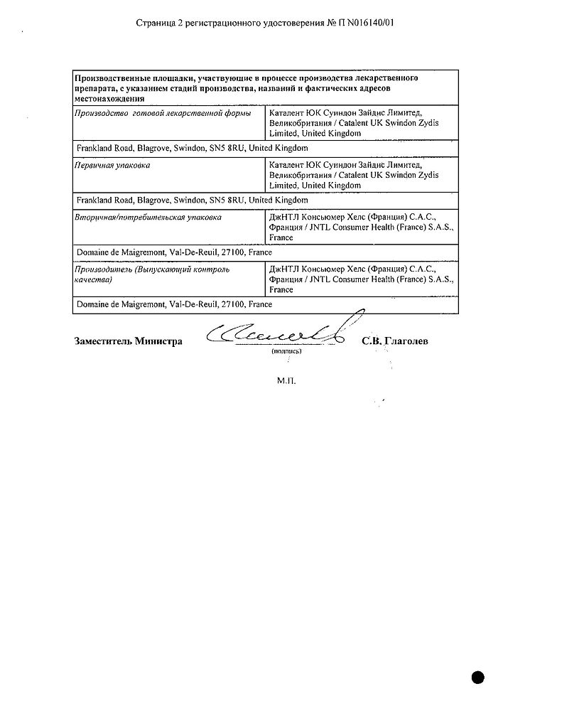 Производитель: Каталент ЮК Суиндон Зайдис Лимитед, Великобритания