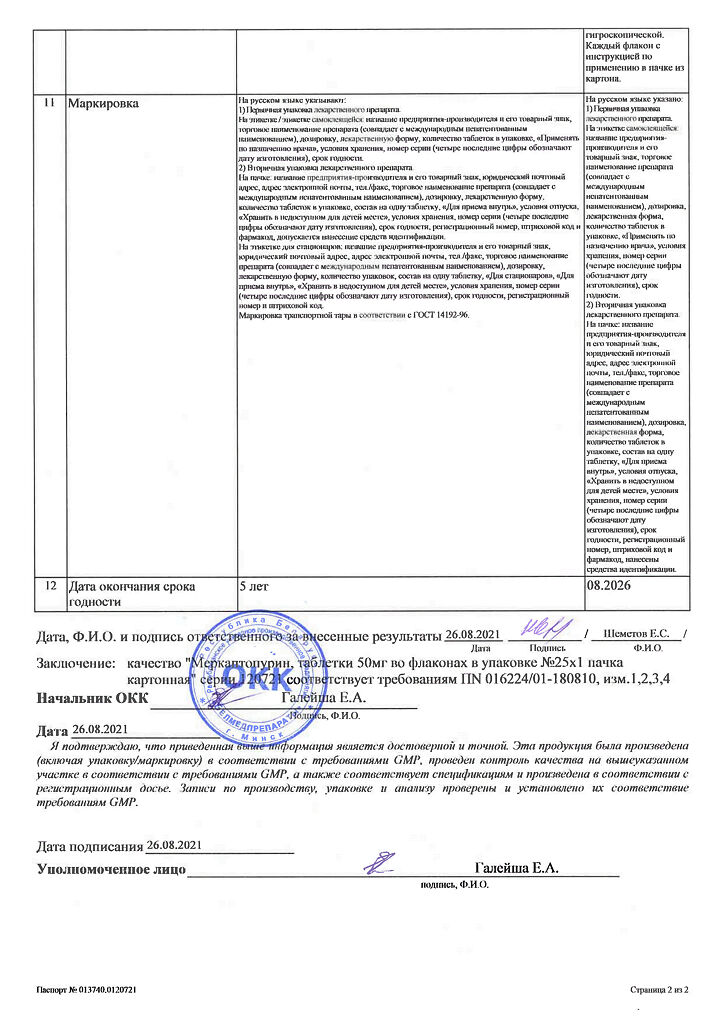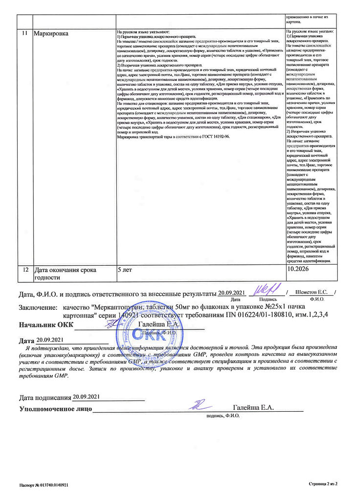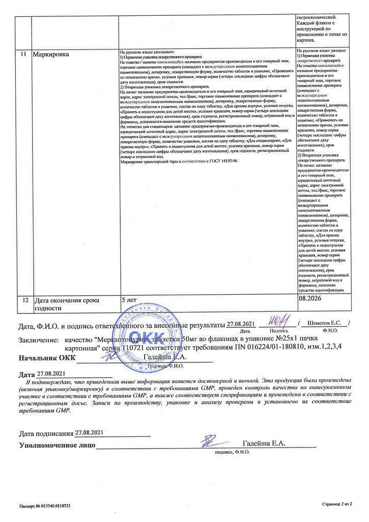 Действующее вещество: Меркаптопурин