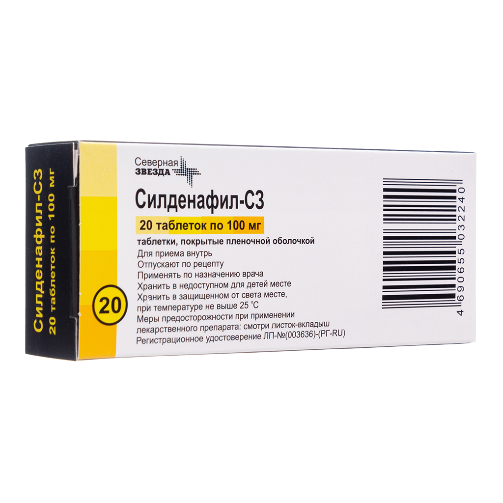 • 📒 Подробная инструкция по применению Силденафил-СЗ таблетки покрыт.плен.об. 100 мг 20 шт
