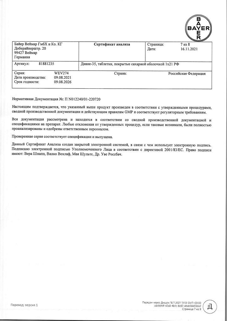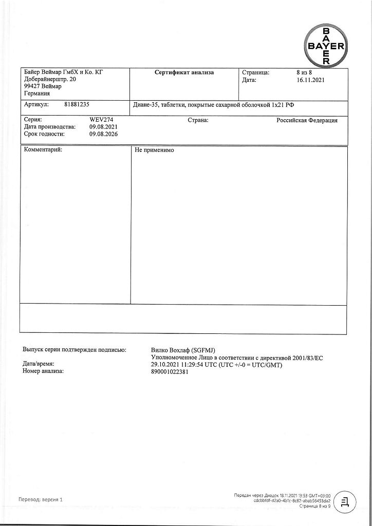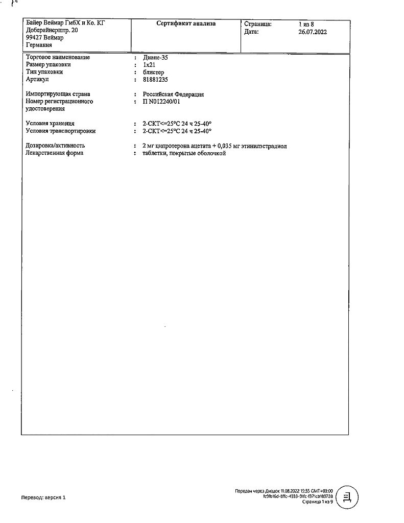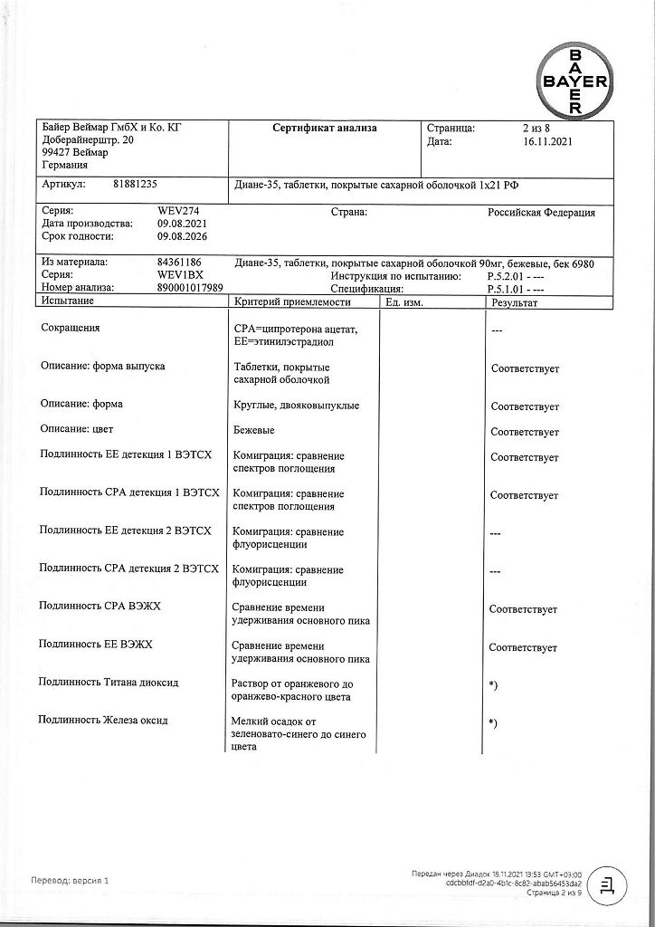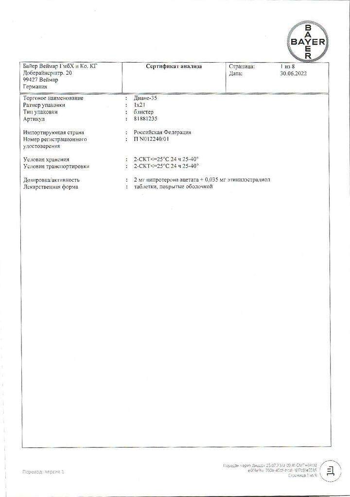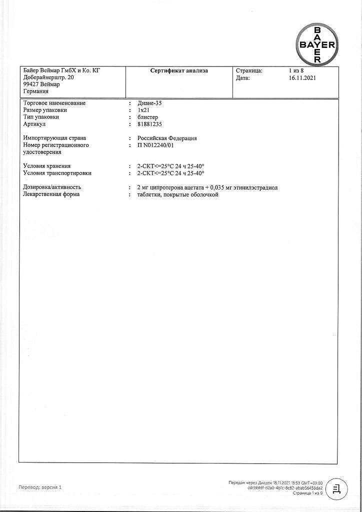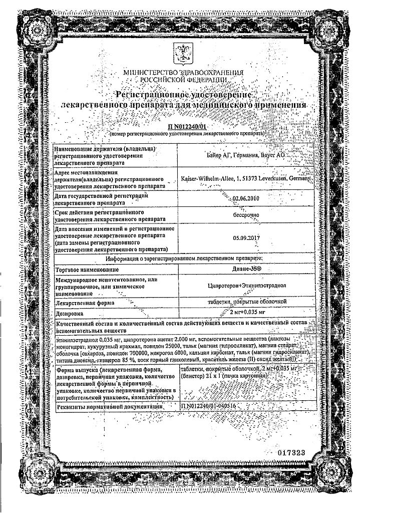Действующее вещество: Ципротерон, Этинилэстрадиол