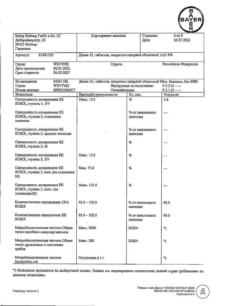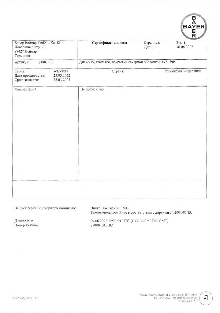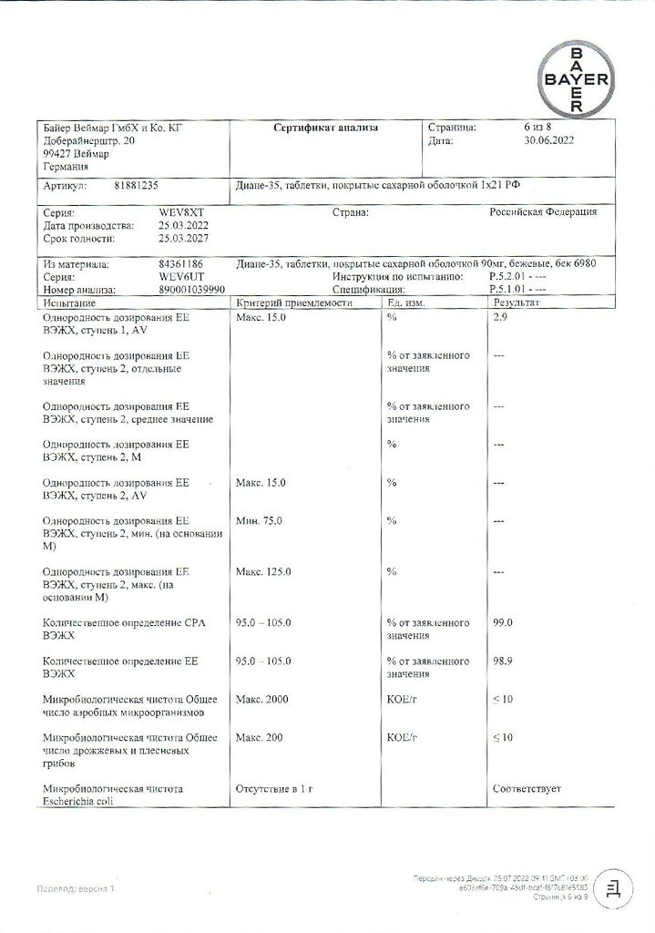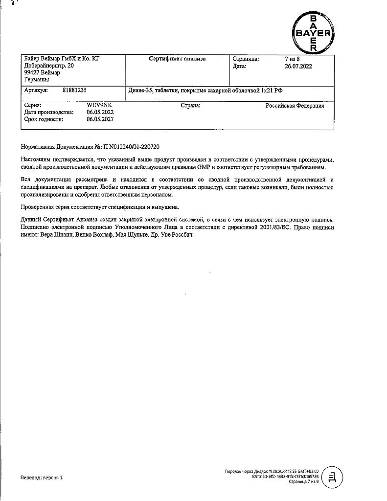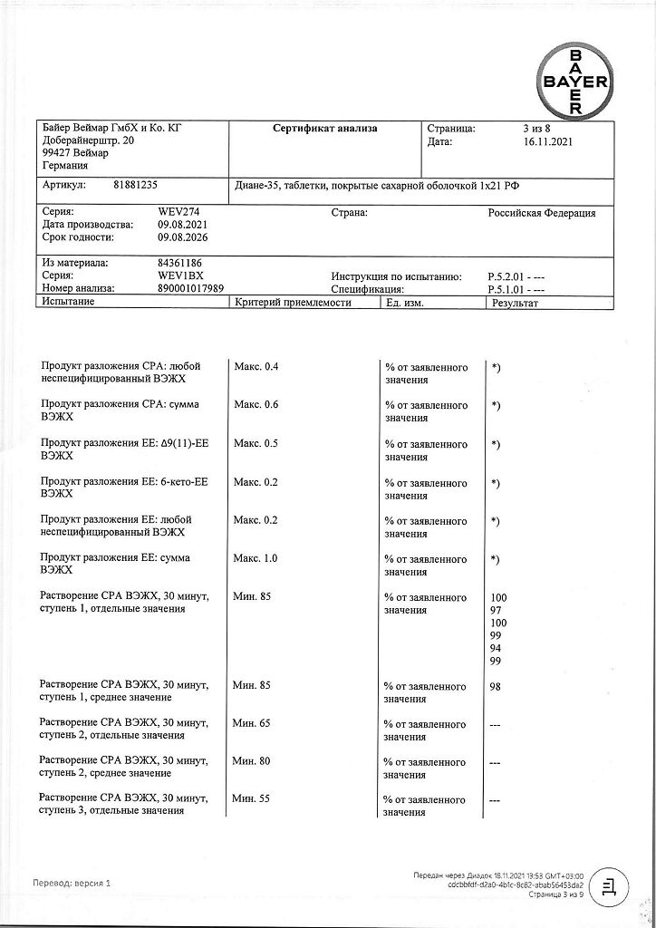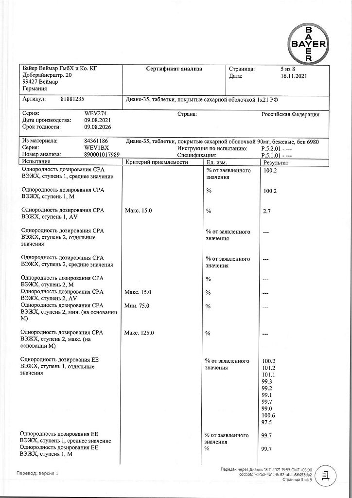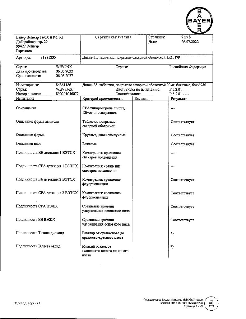 Действующее вещество: Ципротерон, Этинилэстрадиол