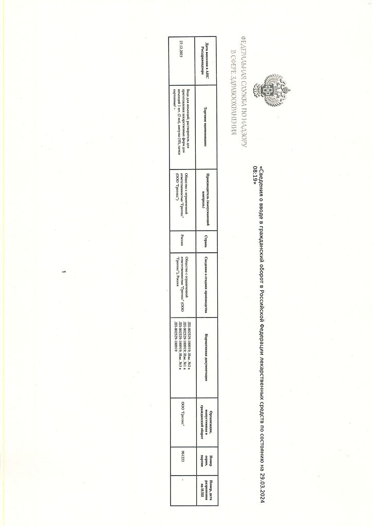 Страница носит информационный характер о наличии препаратов. Перед назначением и применением проконсультируйтесь с врачом