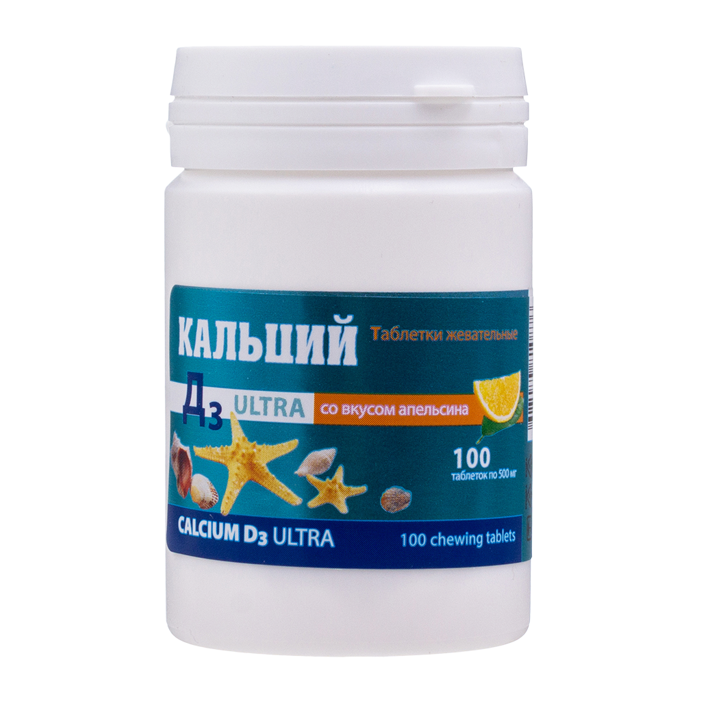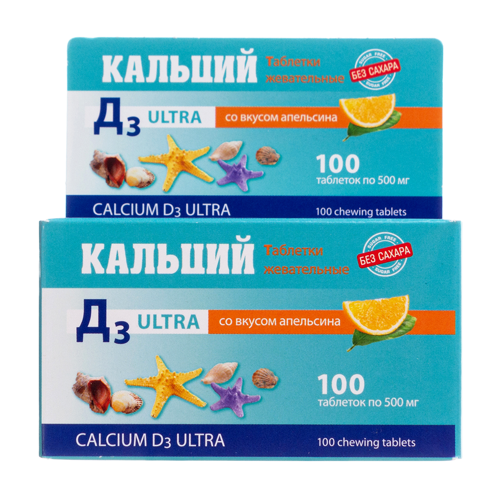 Кальций Д3 Ультра жевательные таблетки со вкусом апельсина массой 500 мг 100 шт