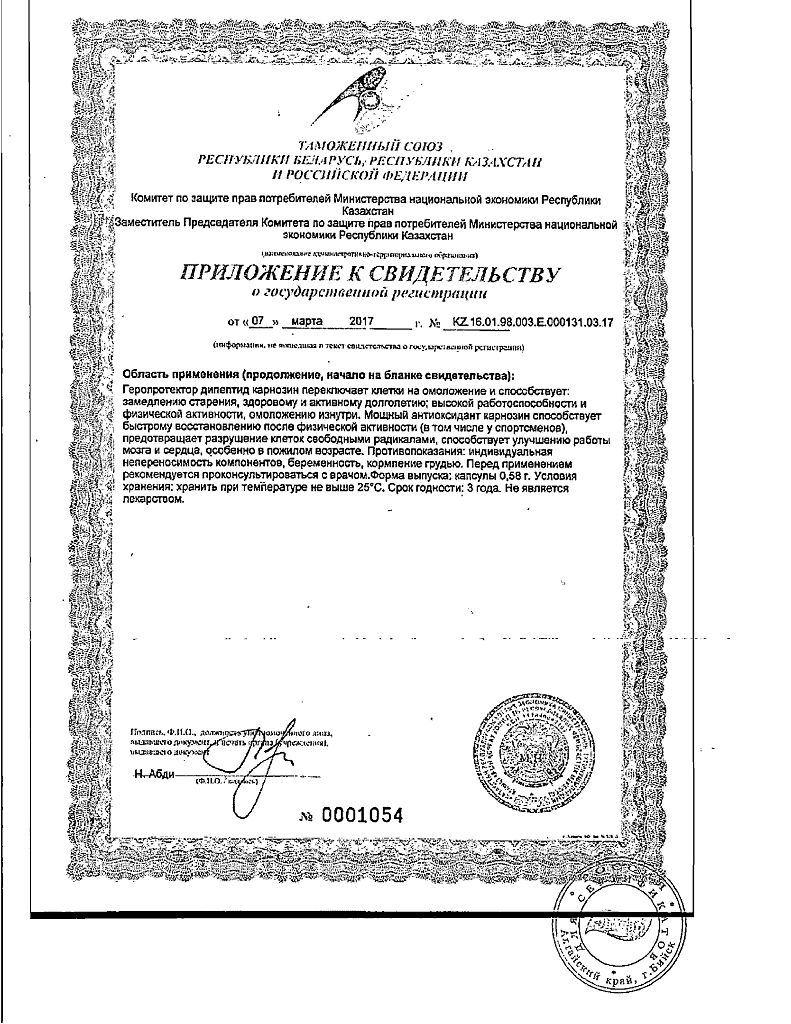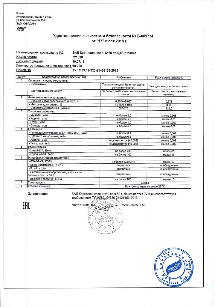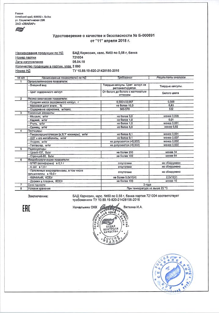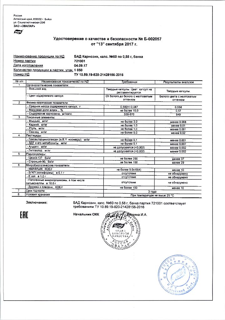 Документы Карнозин Эвалар капсулы по 0,58 г 60 шт