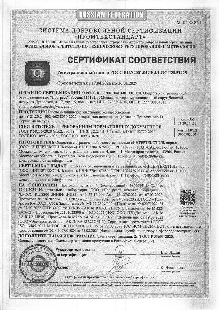Производитель: ИНТЕРТЕКСТИЛЬ корп., Россия
