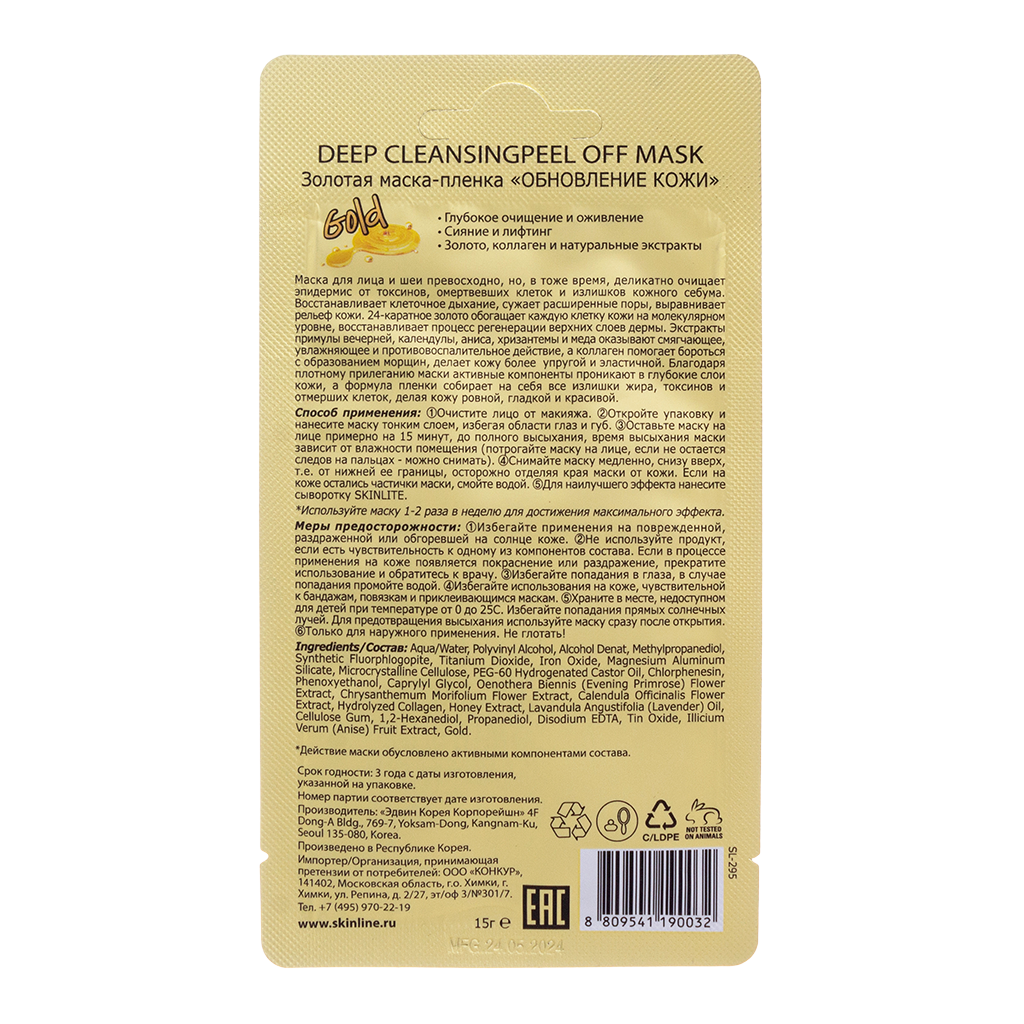 • 📲 Цена на SkinLite Маска-пленка золотая Обновление кожи 15 мл 1 шт ниже в нашем приложении