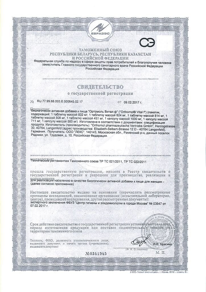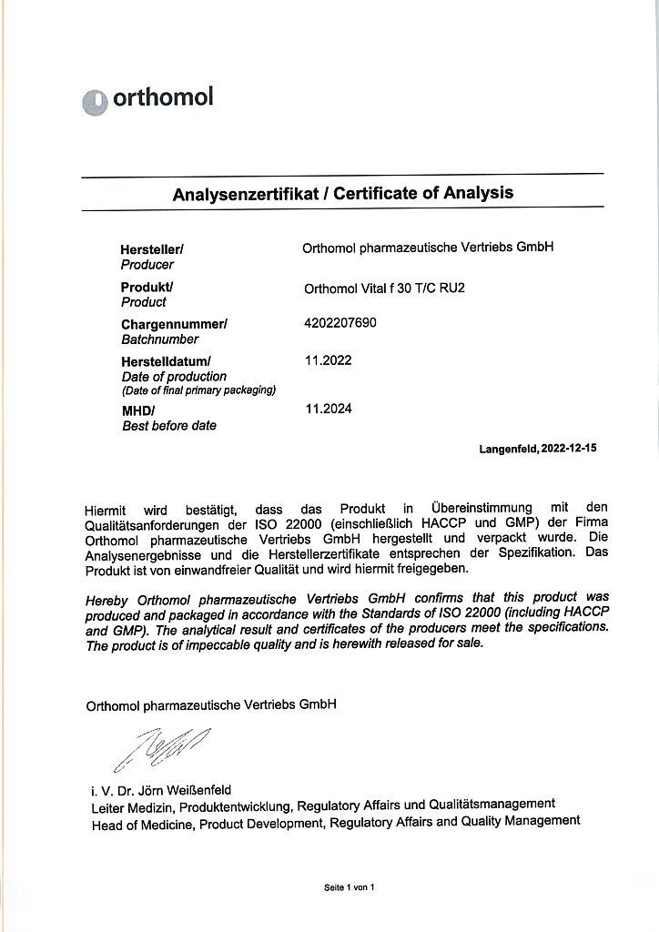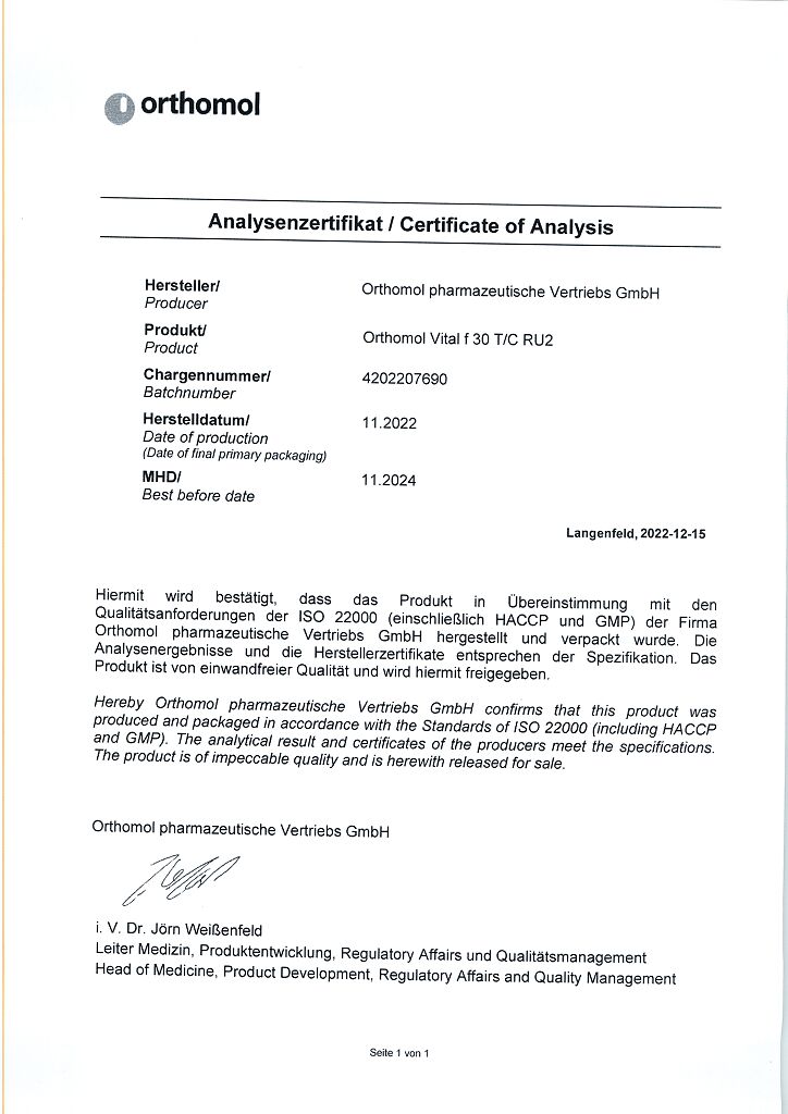 Производитель: Orthomol pharmazeutische Vertriebs GmbH, Германия