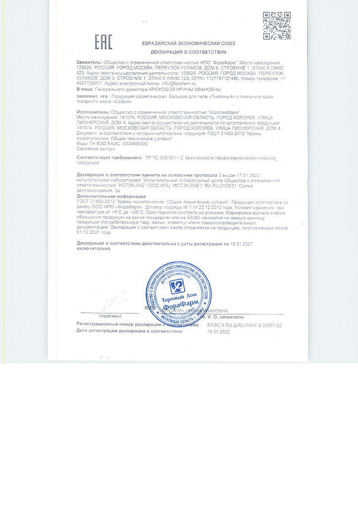 • 📒 Подробная инструкция по применению Софья бальзам для тела с пчелиным ядом 125 мл 1 шт