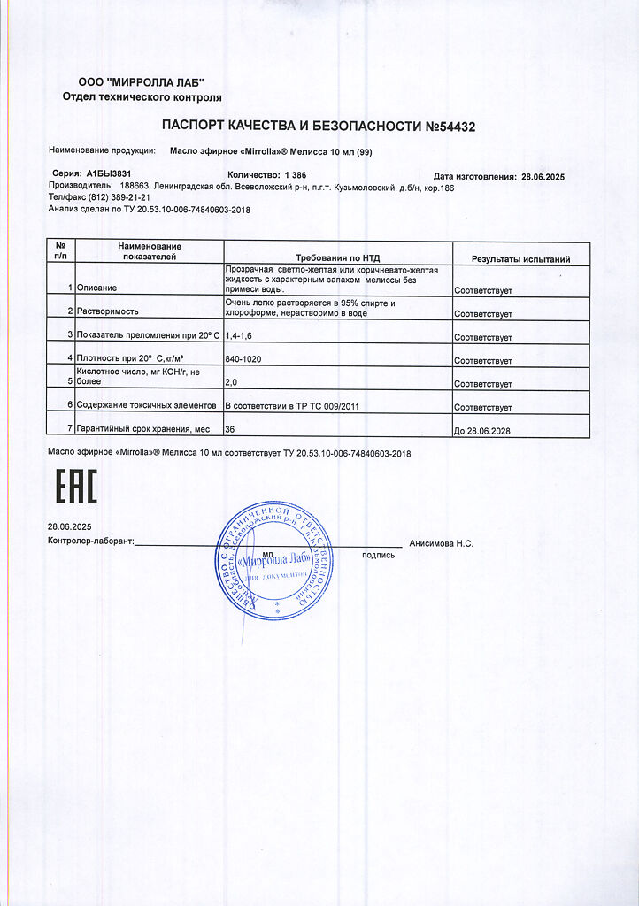 Производитель: Мирролла Лаб, Россия