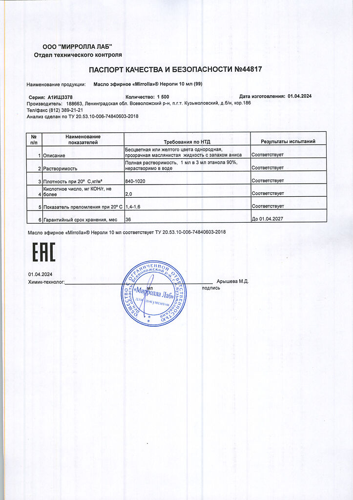 Все варианты Масло эфирное Нероли