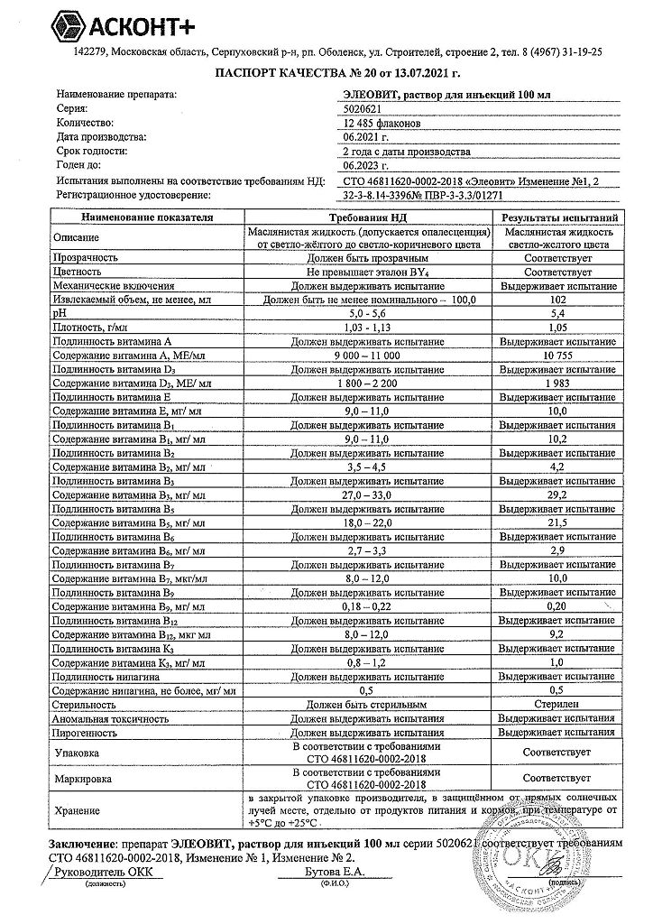 В комбинированном витаминном комплексе витамины приведены в физиологически обоснованных соотношениях. Витамины, содержащиеся в элеовите, являются составными частями различных ферментных групп, которые активно участвуют в обмене углеводов, белков и жиров.