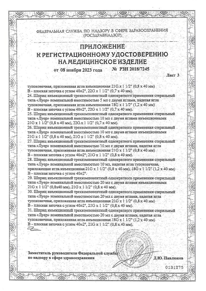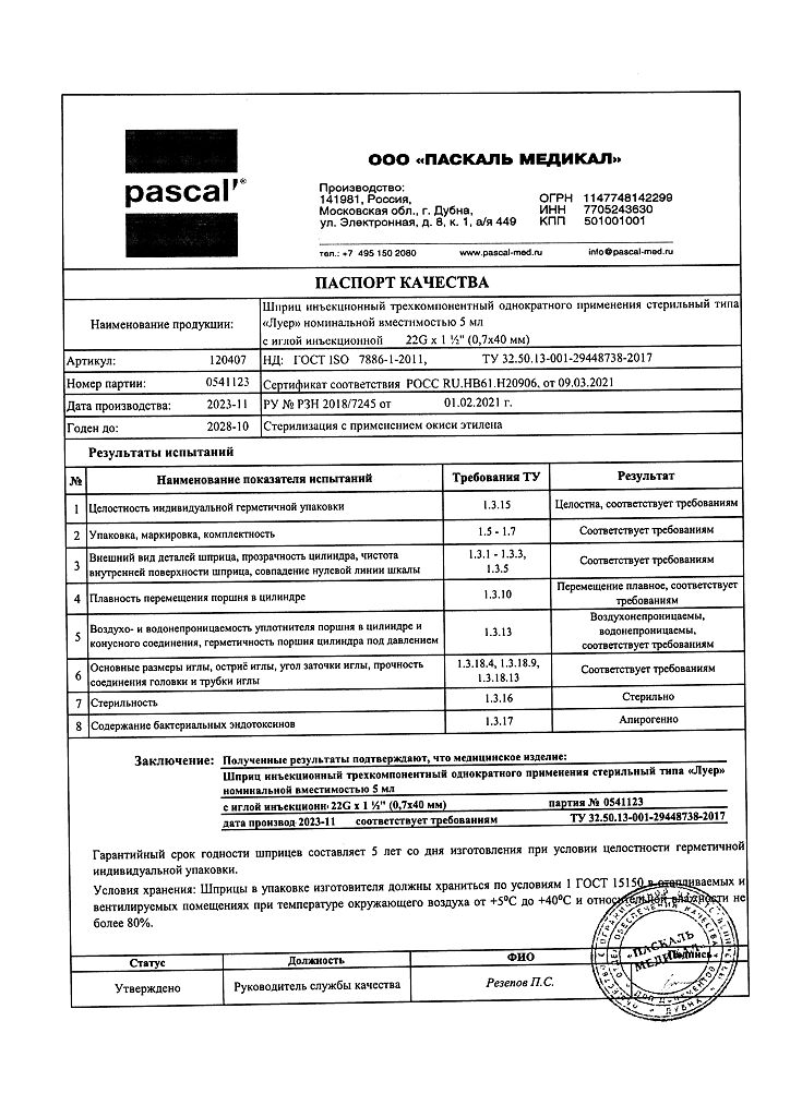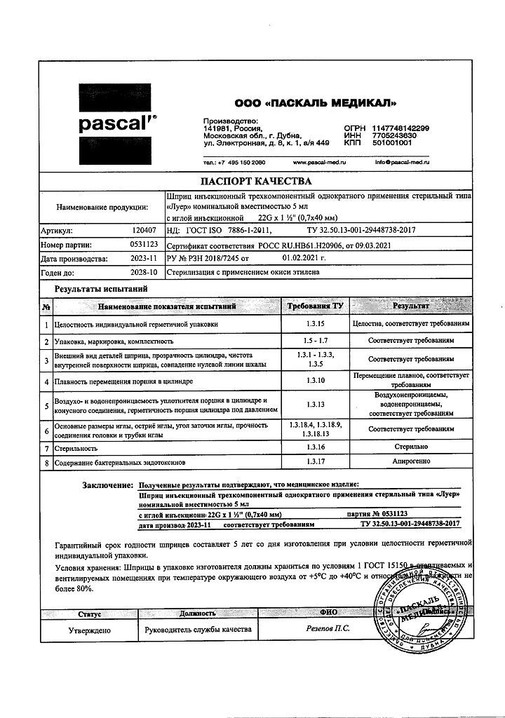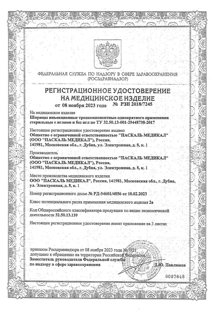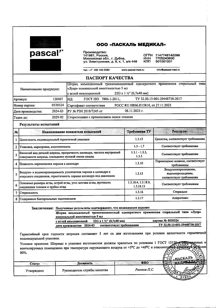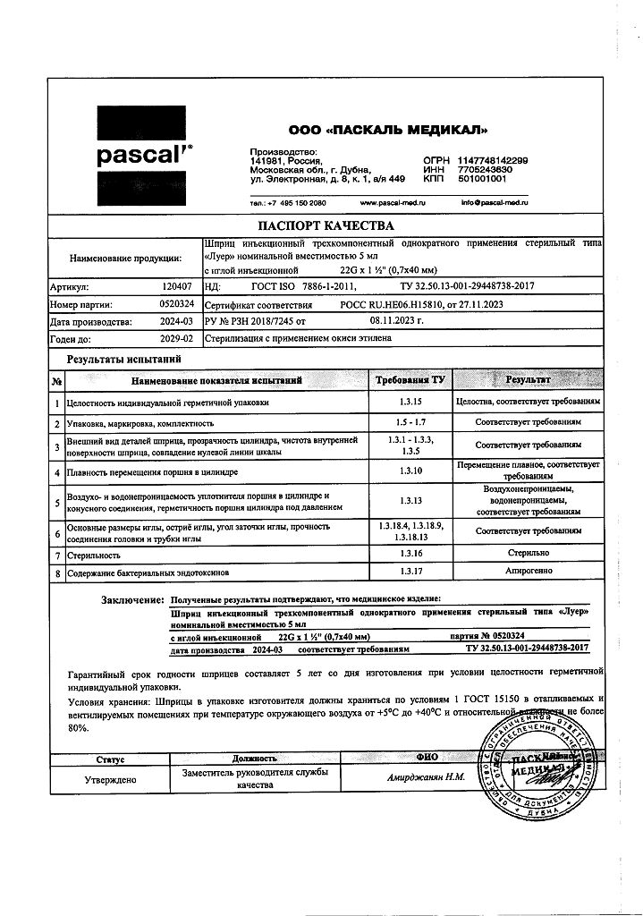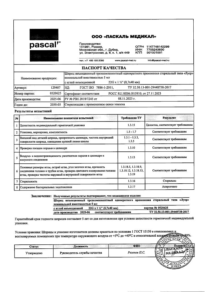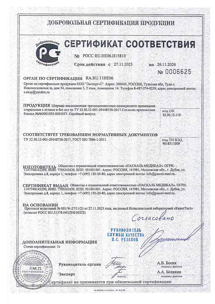 • 📒 Подробная инструкция по применению Шприц 3-х компонентный Pascal 5 мл с иглой 22G (0,7х40 мм) 10 шт