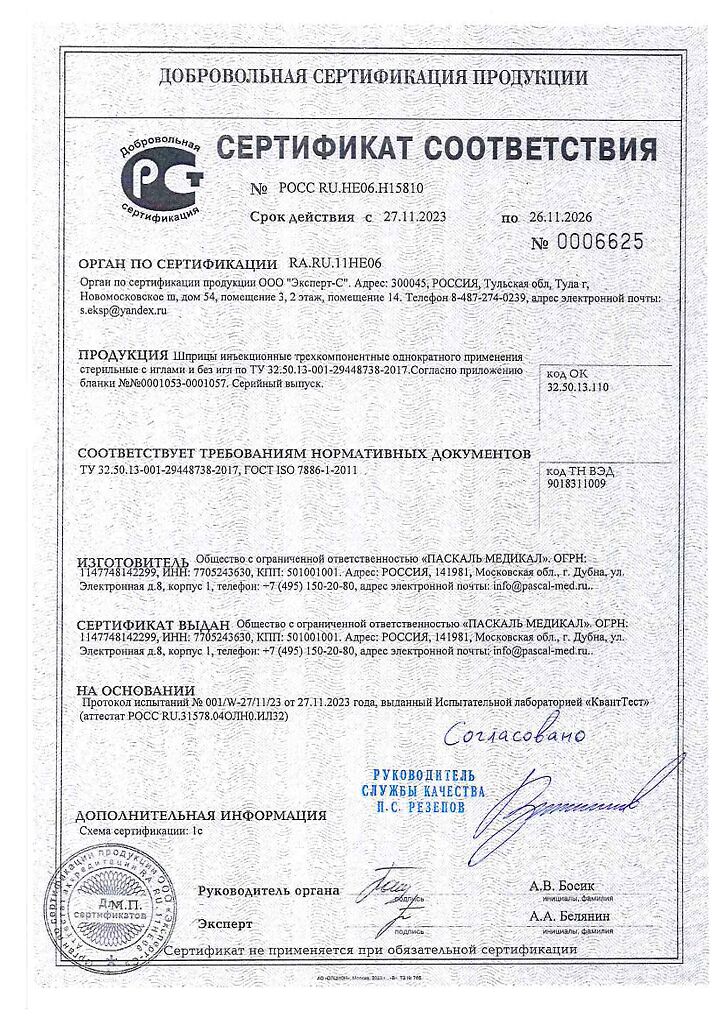 Производитель: Паскаль Медикал ООО, Россия