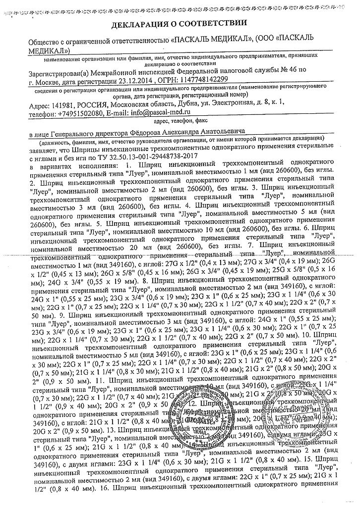 Все варианты Шприц 3-х компонентный Pascal