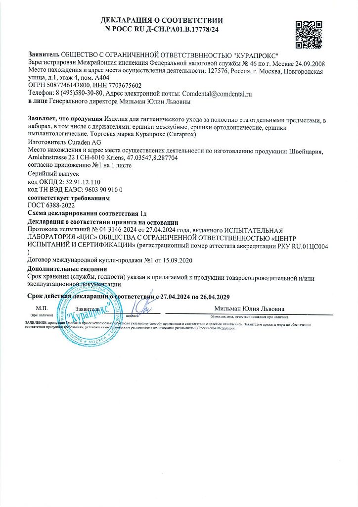 Документы Curaprox Набор для гигиенического ухода Prime Start: 5 ершиков CPS 07 с держателем UHS 4 1 уп
