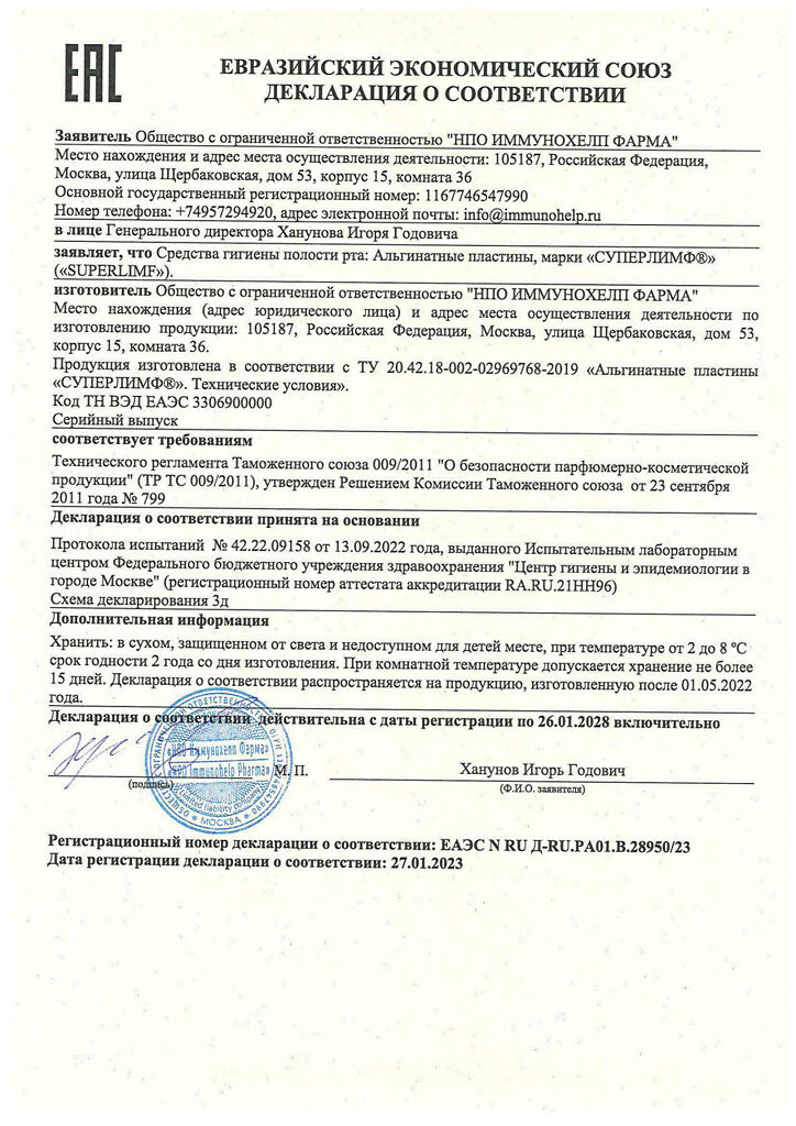 Альгинатные пластины «Суперлимф®» применяются местно для гигиенического и профилактического ухода за тканями пародонта, полостью рта и глотки, в том числе: