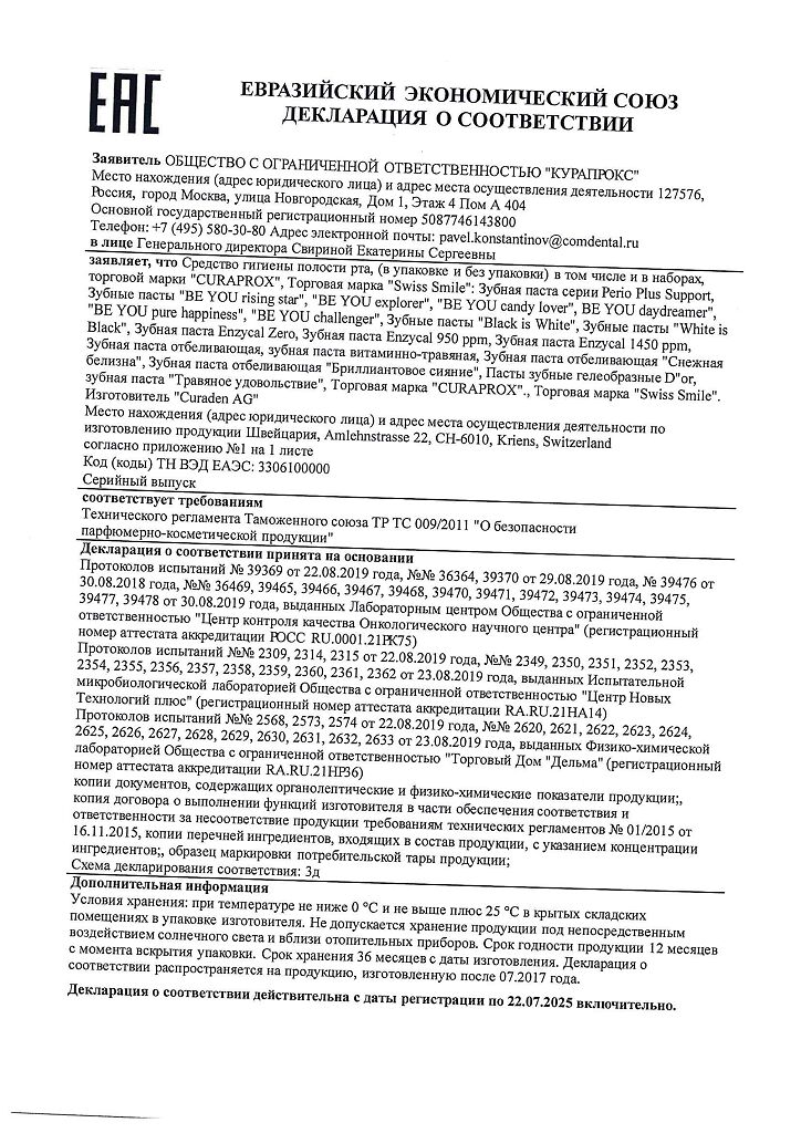 • 📒 Подробная инструкция по применению Curaprox Be You Зубная паста Исследователь салатовая 60 мл 1 шт