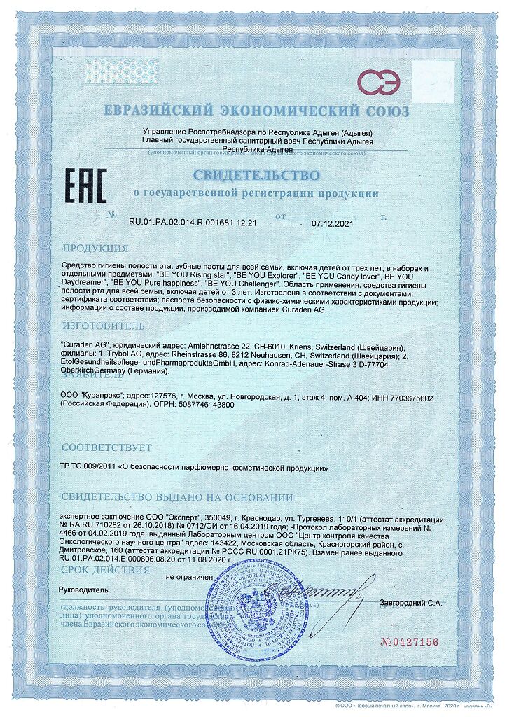 Документы Curaprox Be You Зубная паста Мечтатель голубая 60 мл 1 шт