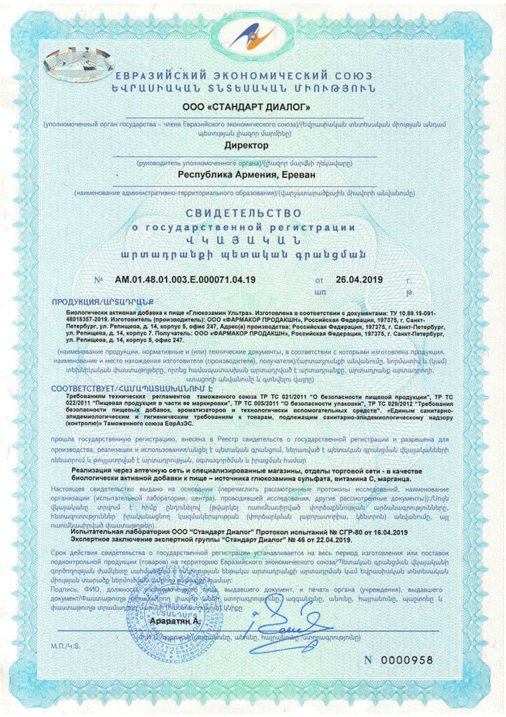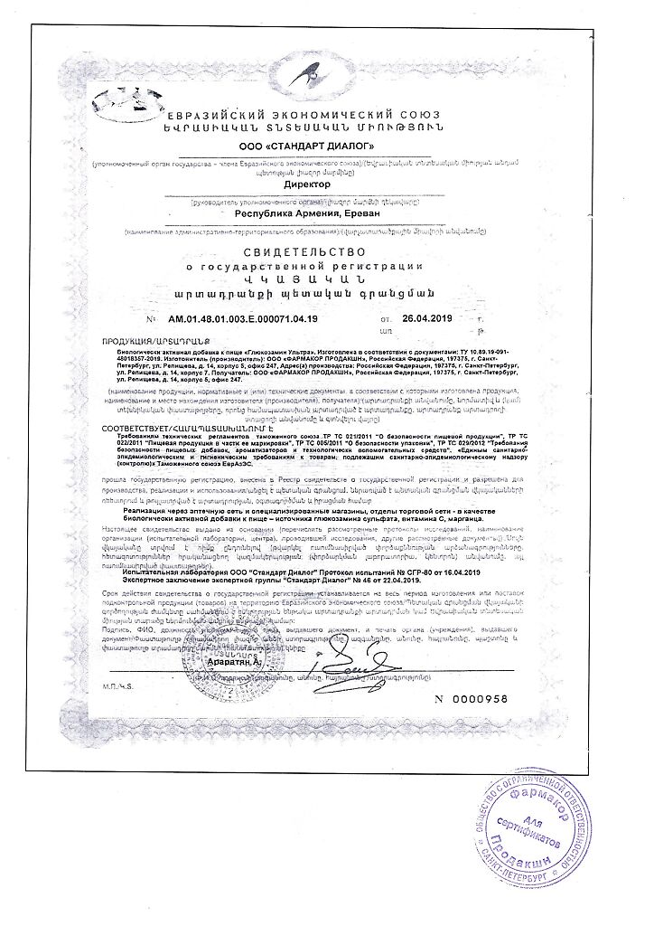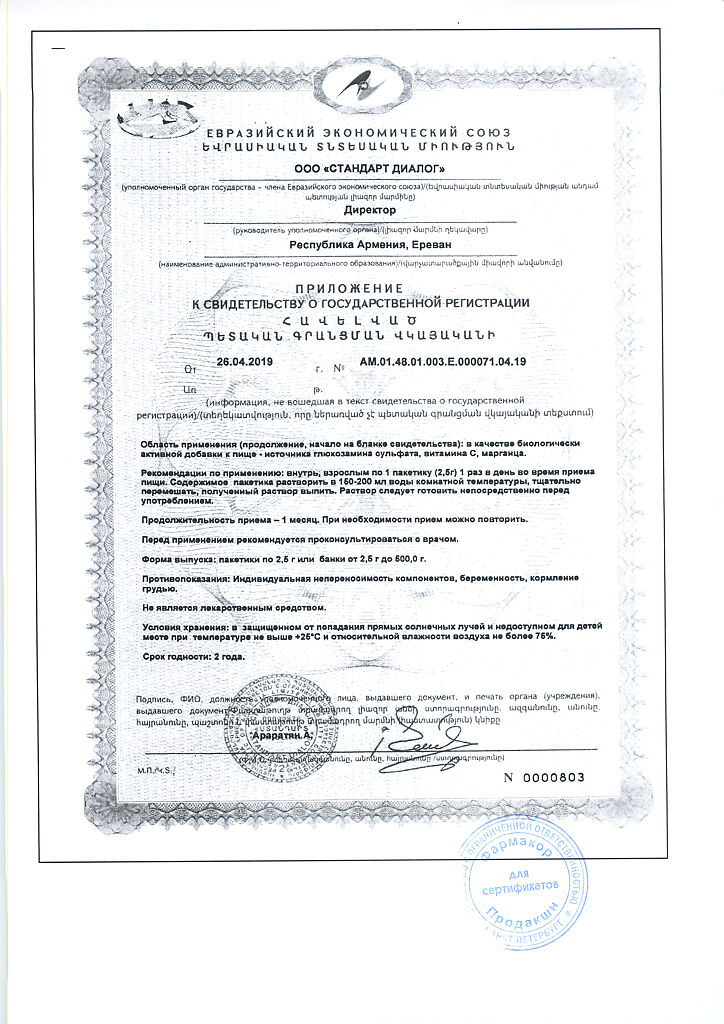 Действующее вещество: Глюкозамин