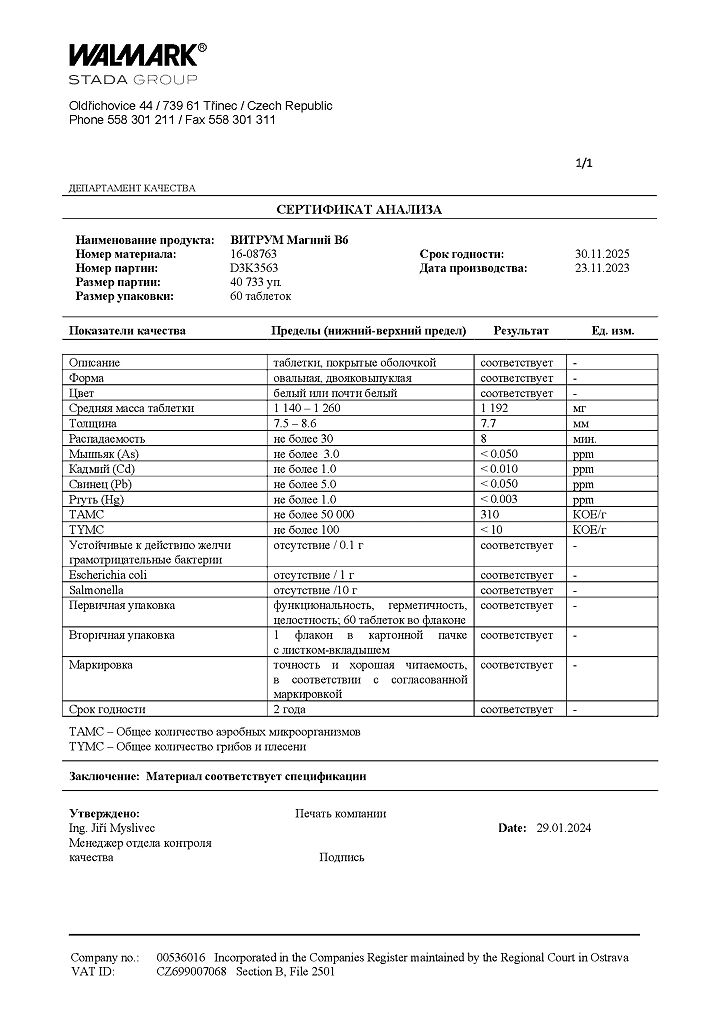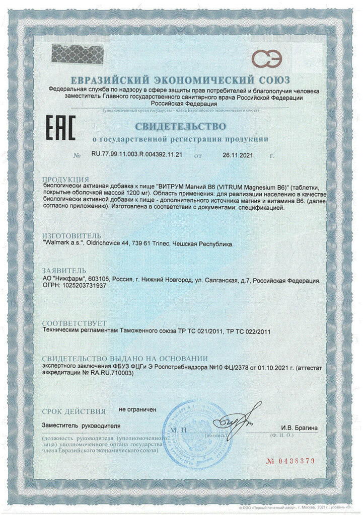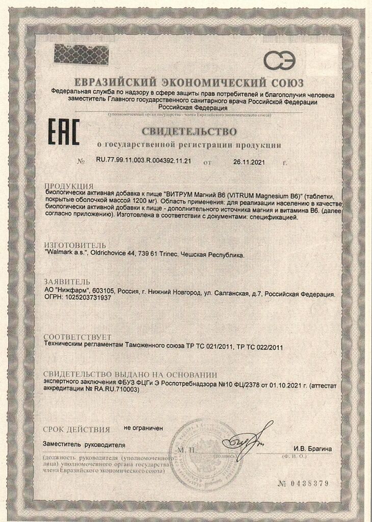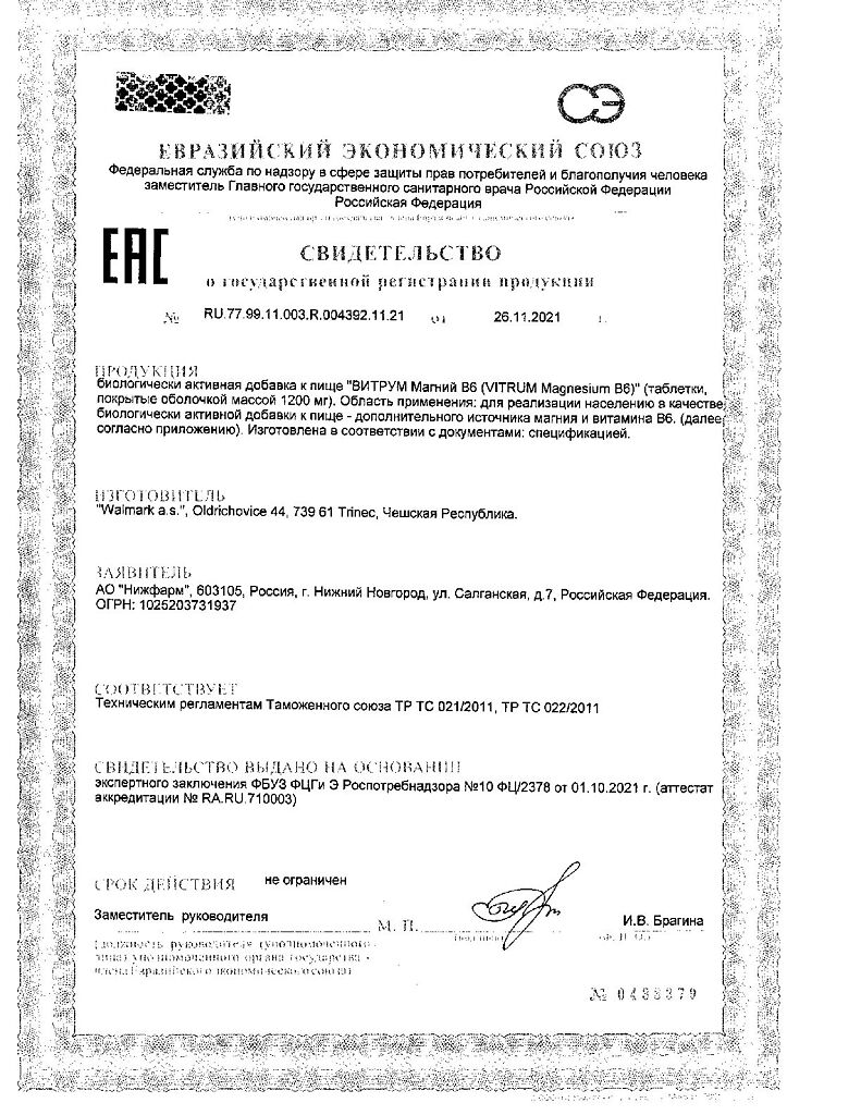Документы Витрум Магний В6/Vitrum Magnesium B6 таблетки покрыт.об. массой 1200 мг 60 шт