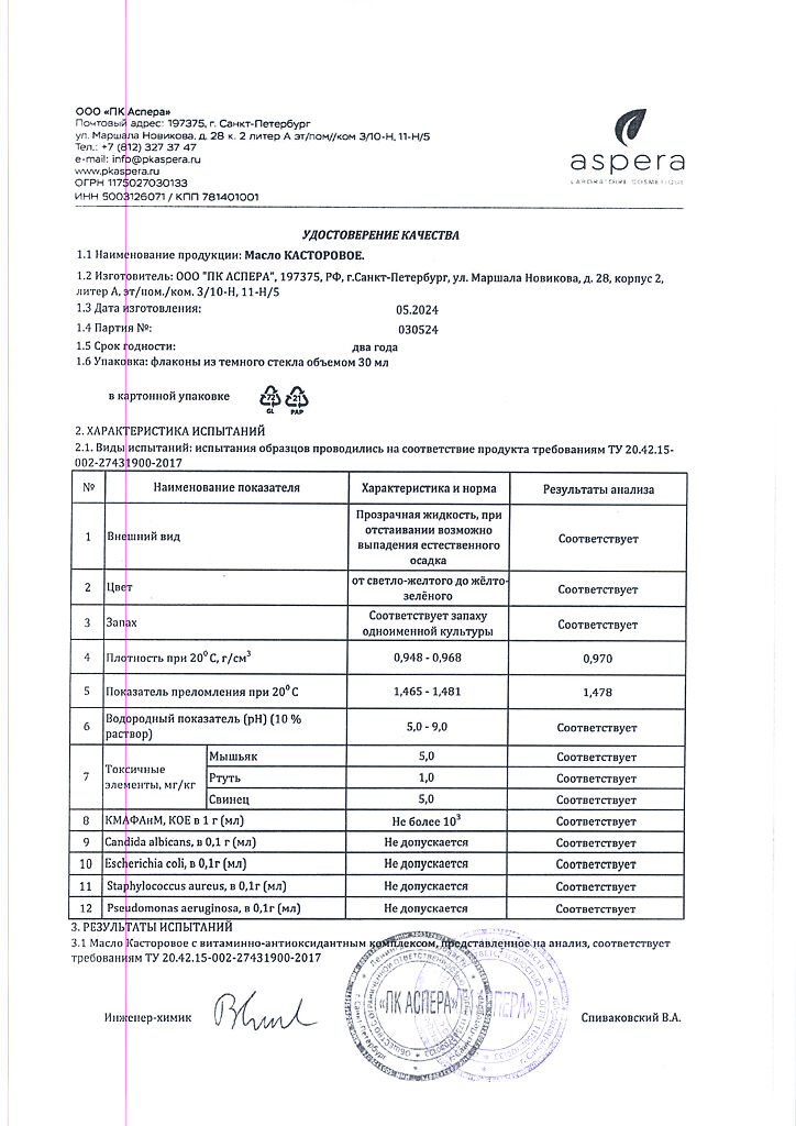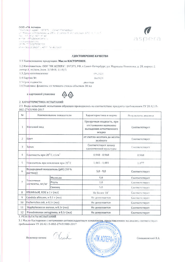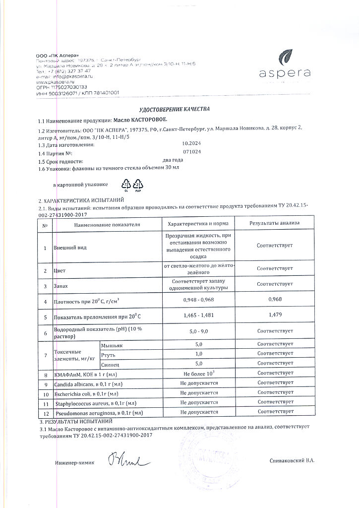 Документы Масло косметическое Касторовое 30 мл 1 шт