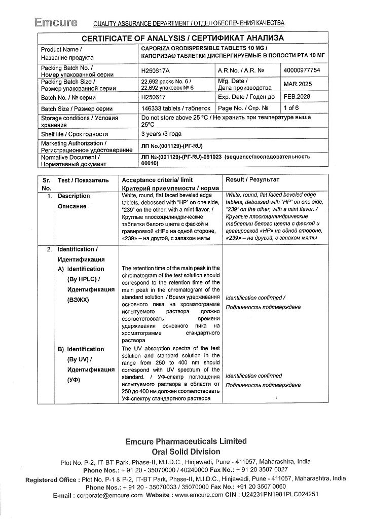 Производитель: Эмкюр Фармасьютикалз Лтд, Индия