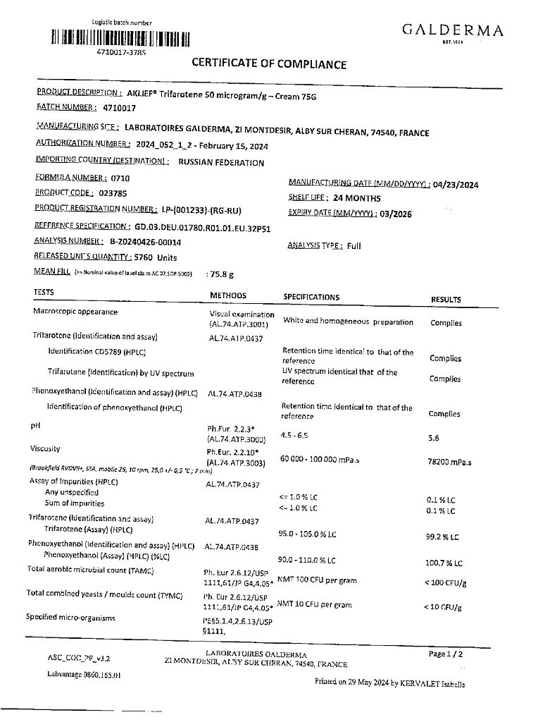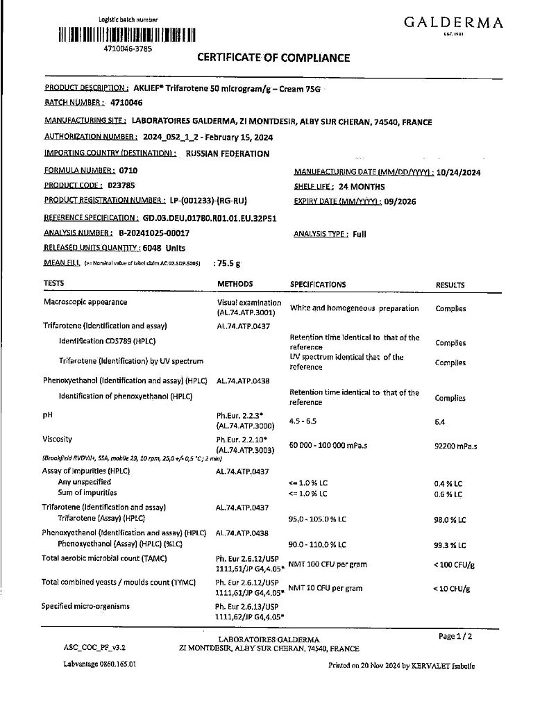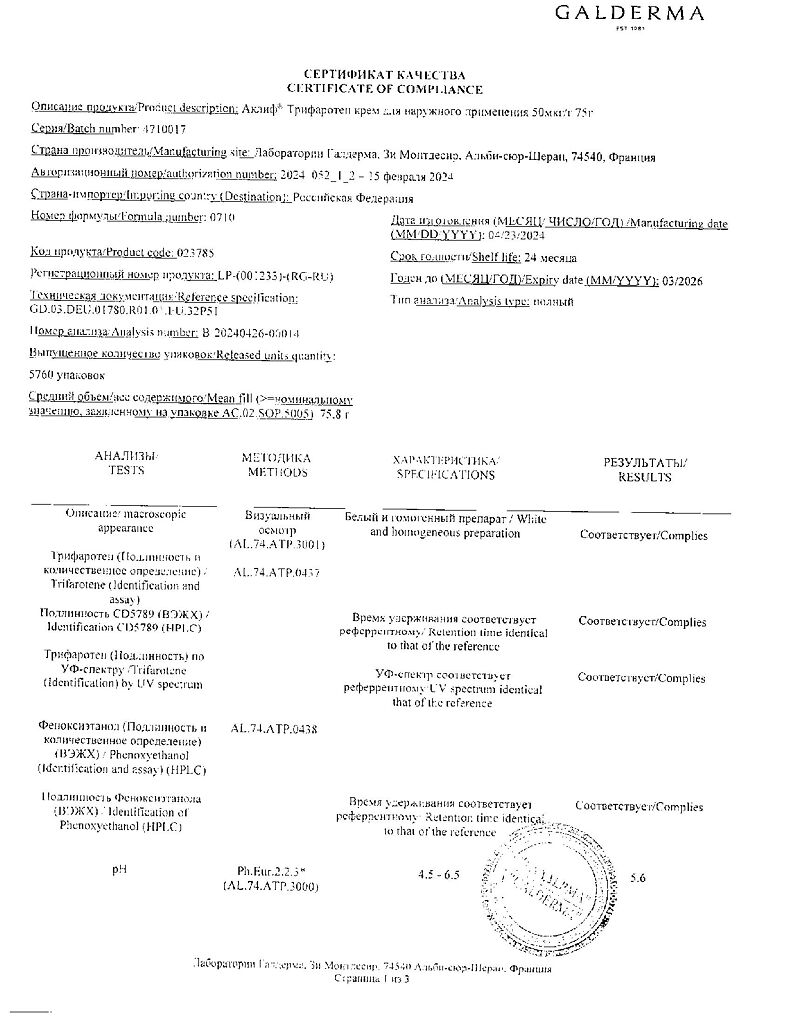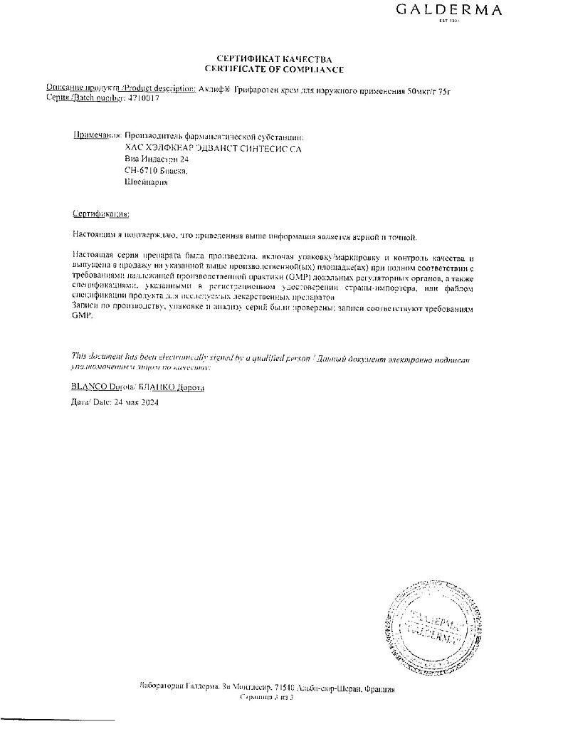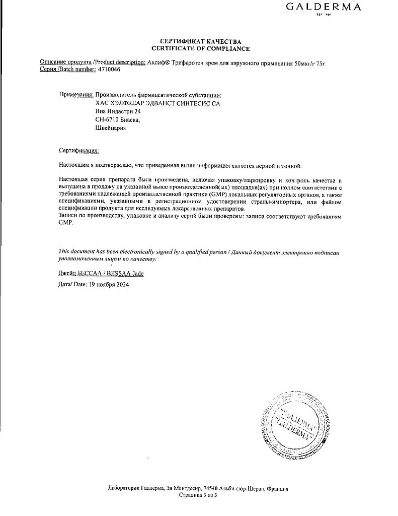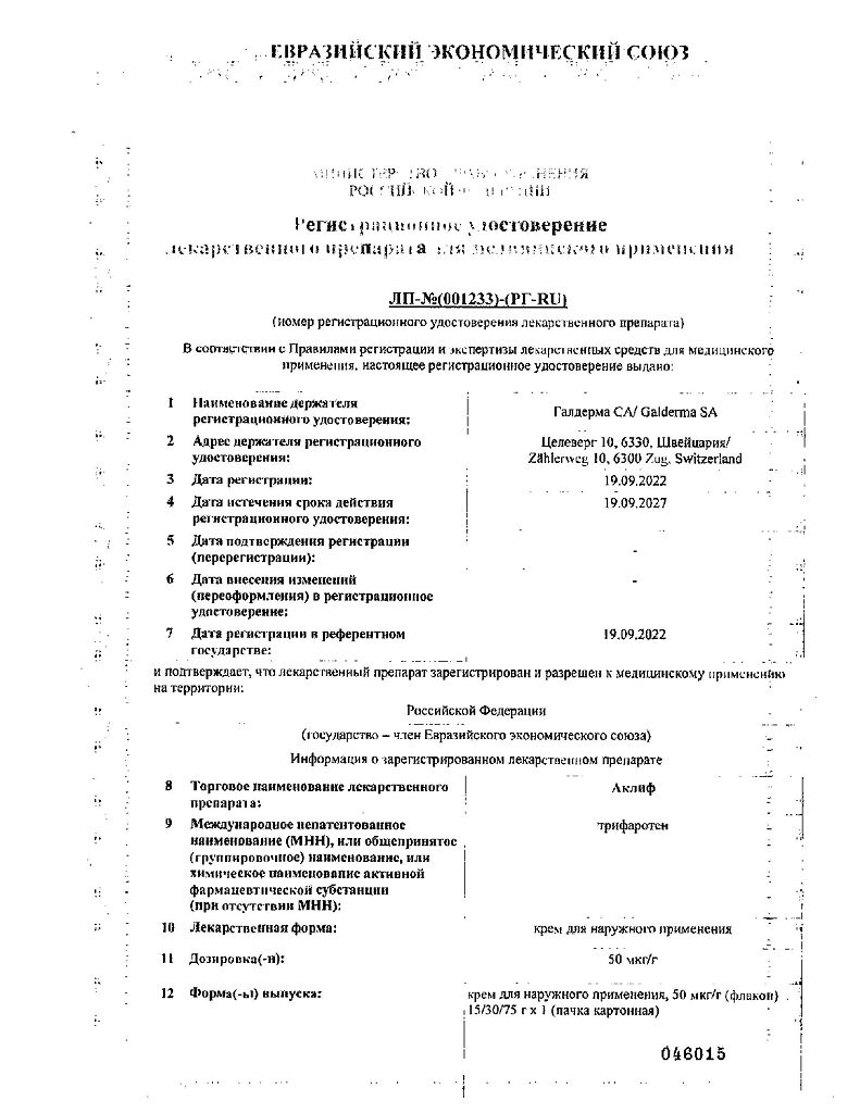 Документы Аклиф крем для наружного применения 50 мкг/г фл 75 г 1 шт