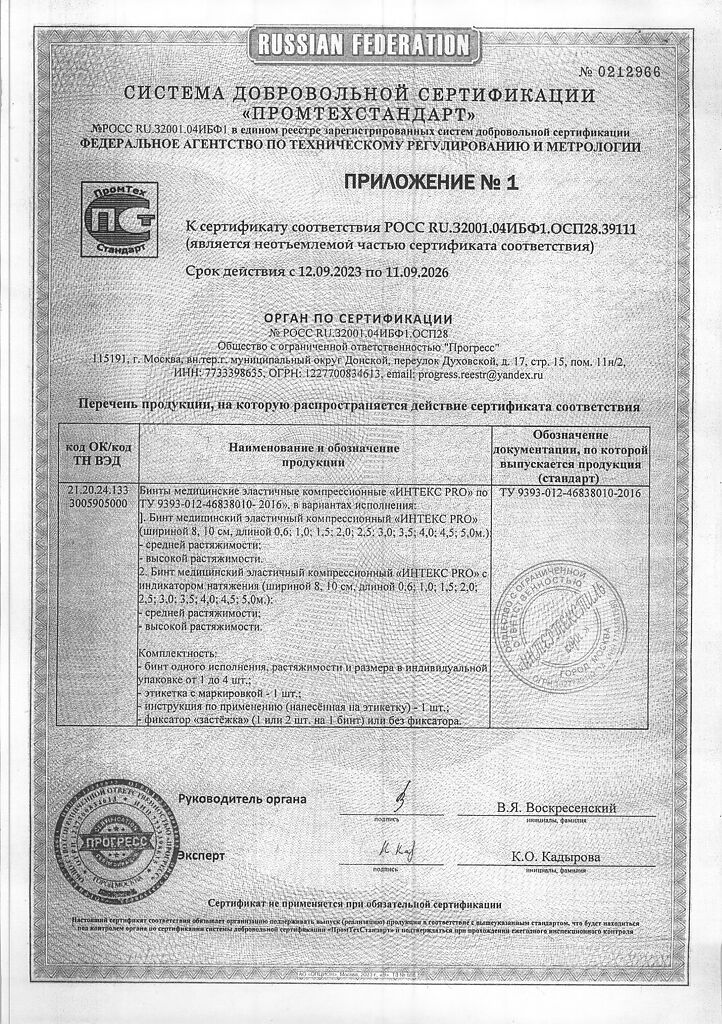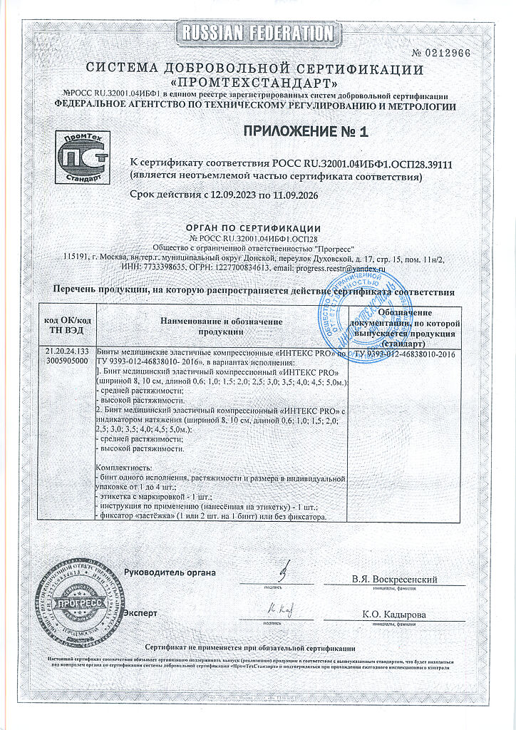 Документы Бинт Интекс PRO эластичный с индикатором давления СР 1,5 м х 10 см с застежкой 1 шт
