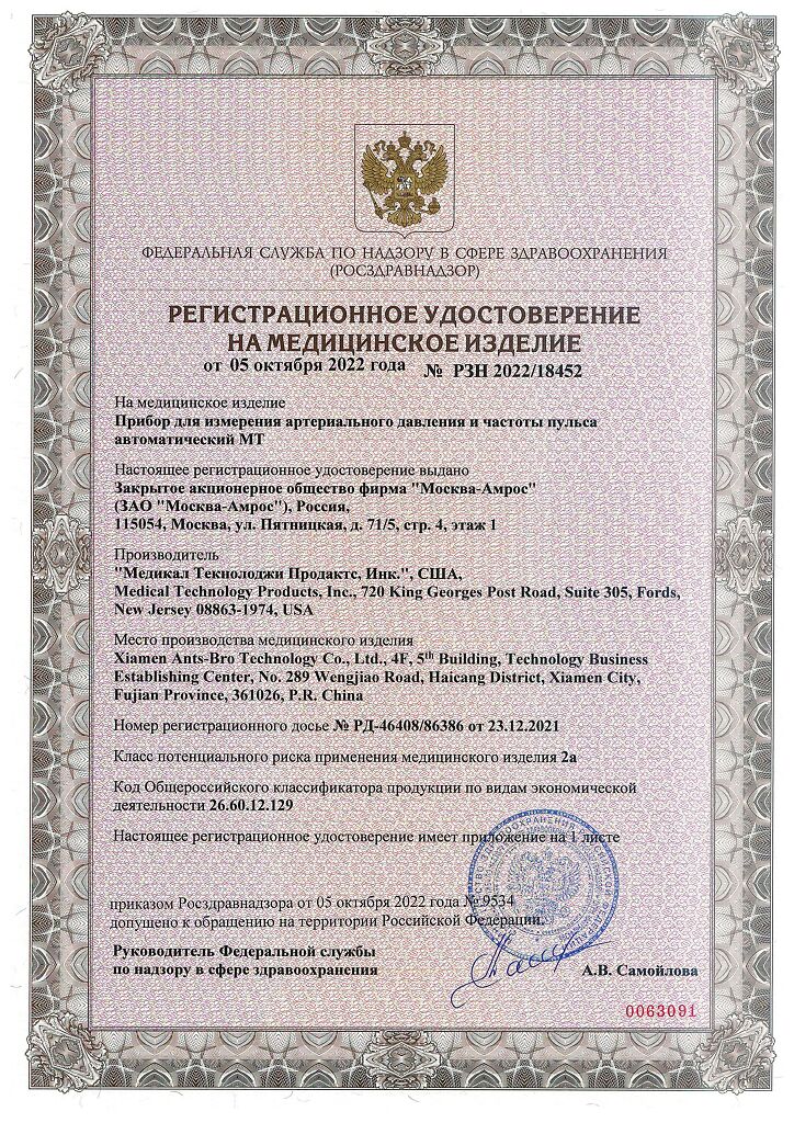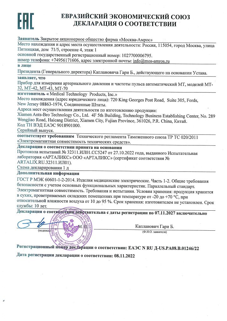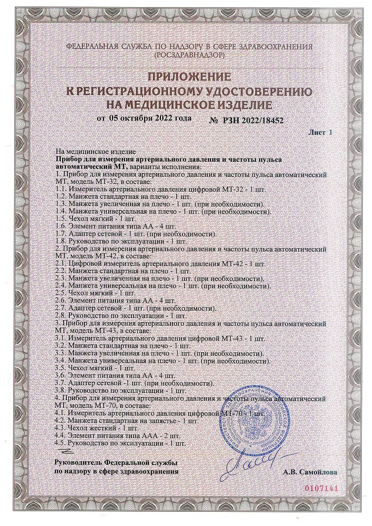 Документы Тонометр автоматический MediTech МТ-43 с адаптером (2 блока памяти, манжета 22-36 см) 1 шт