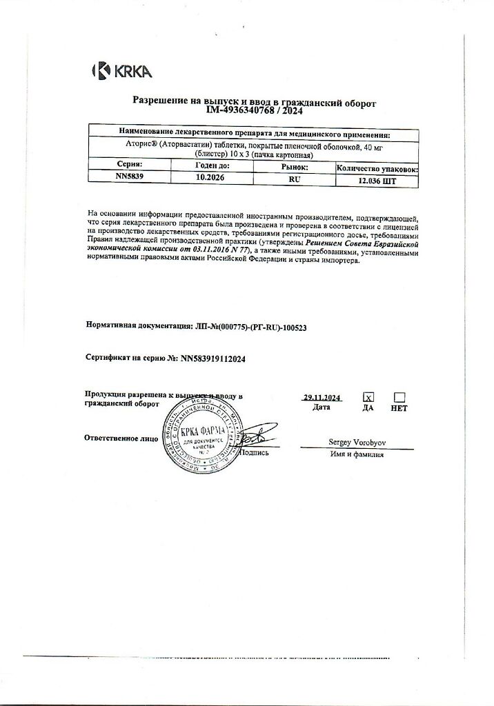 Действующее вещество: Аторвастатин