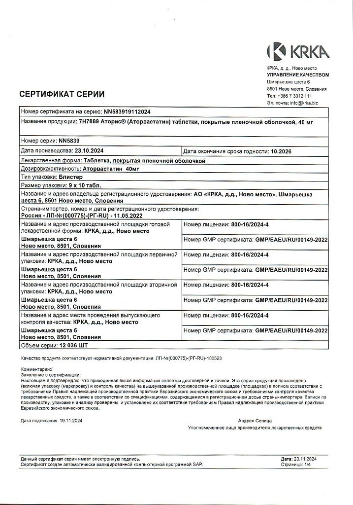 Производитель: КРКА дд Ново место, Словения