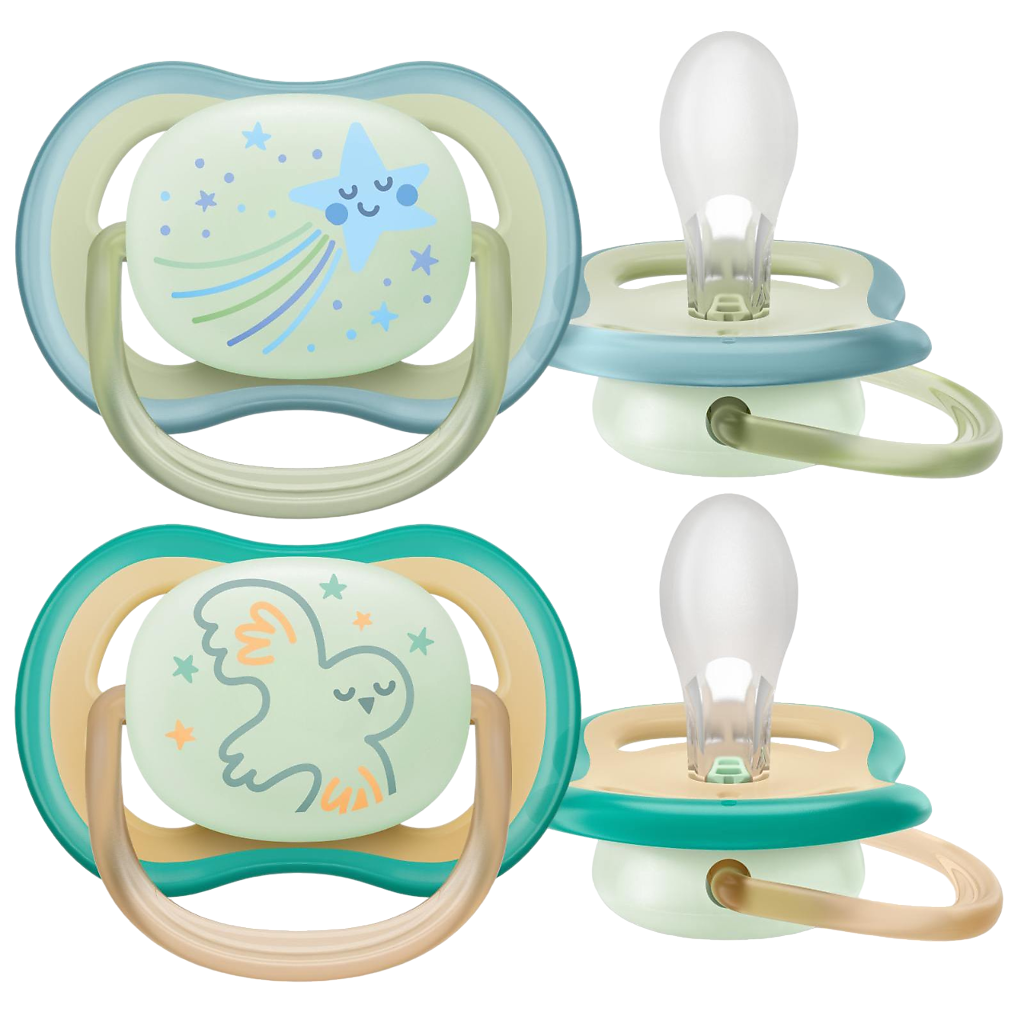 Philips Avent Пустышка светящаяся Ultra Air Night SCF376/18 в комплекте с футляром для хранения и стерилизации 0-6 мес 2 шт