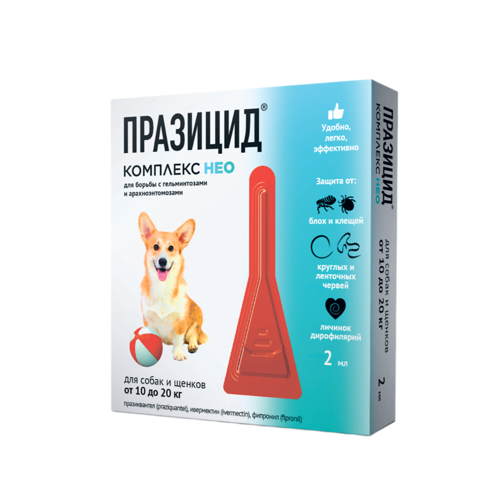 • 📒 Подробная инструкция по применению Празицид-комплекс НЕО капли на холку для собак и щенков от 10 до 20 кг пипетка 2 мл 1 шт