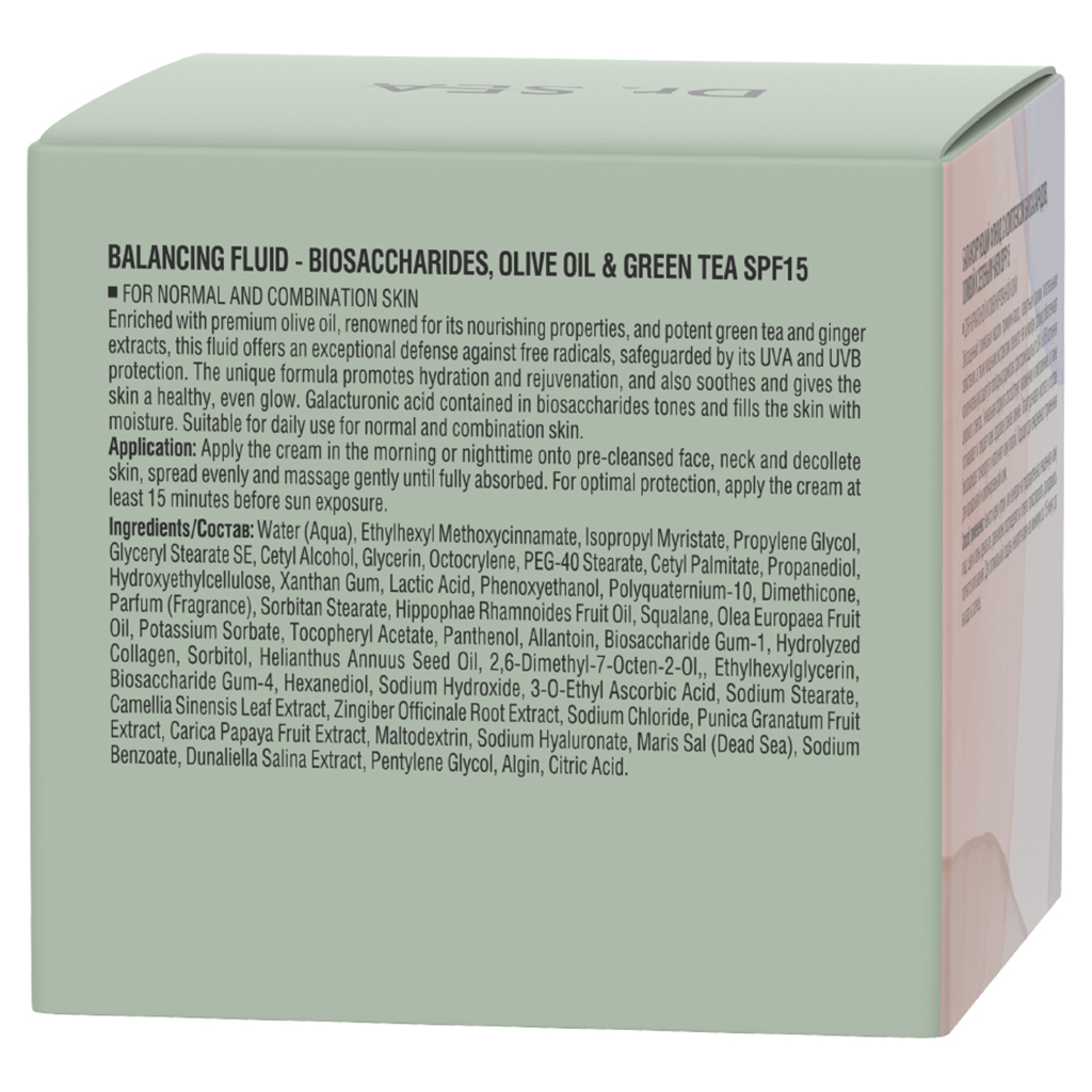 Доктор Си/Dr.Sea Флюид для лица c комплексом биосахаридов оливой и зеленым чаем балансирующий SPF15 50 мл 1 шт