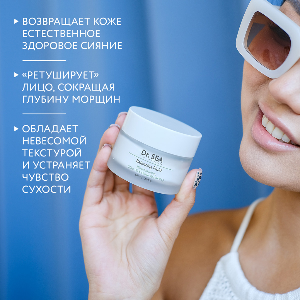 Доктор Си/Dr.Sea Флюид для лица c комплексом биосахаридов оливой и зеленым чаем балансирующий SPF15 50 мл 1 шт: 3 отзыва покупателей и фармацевтов