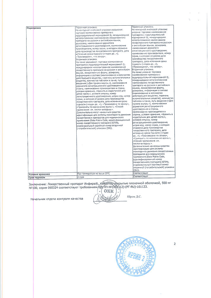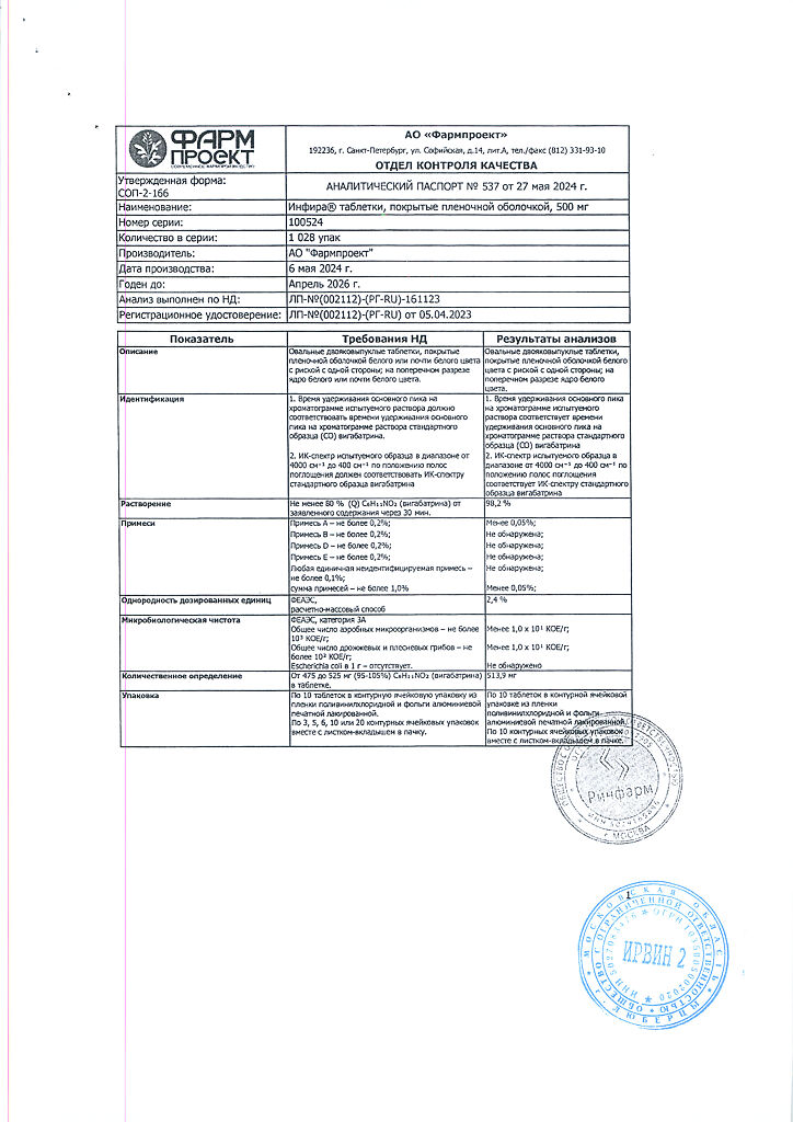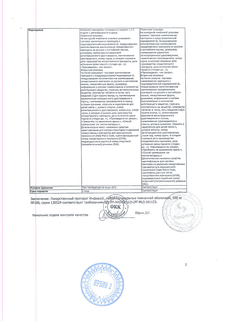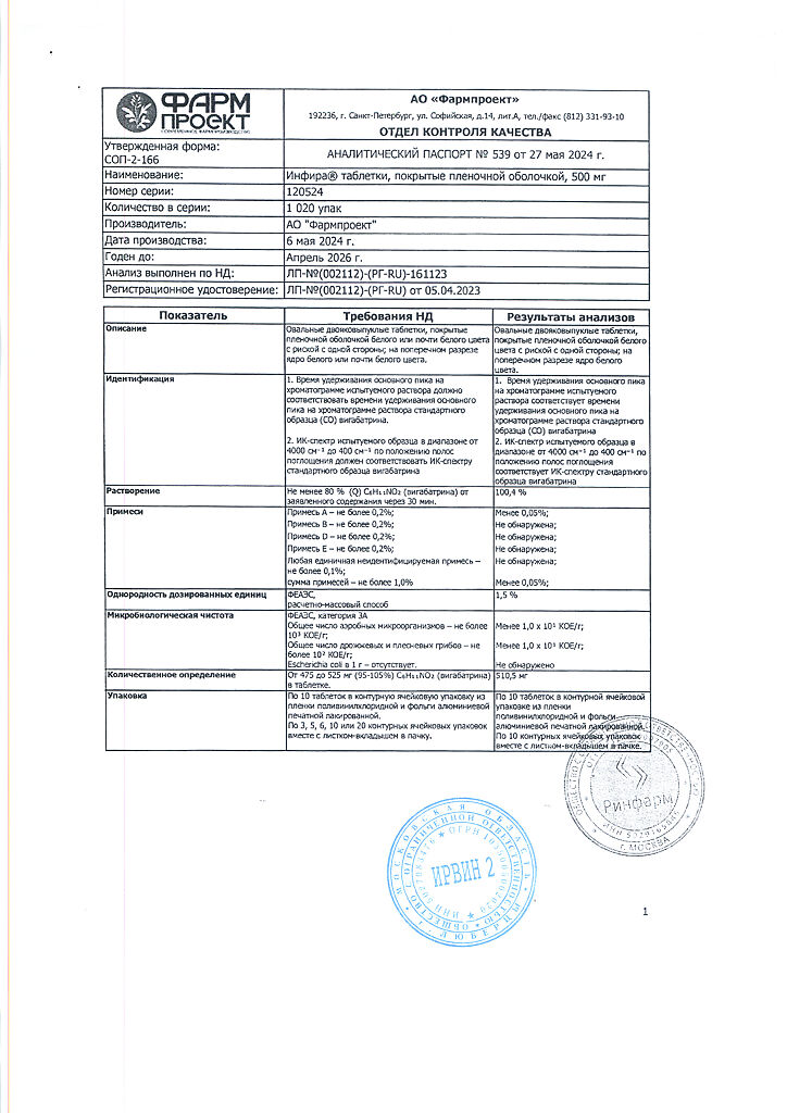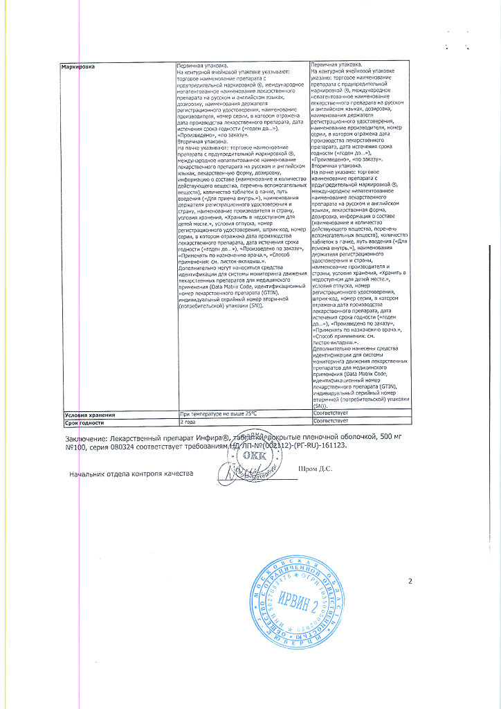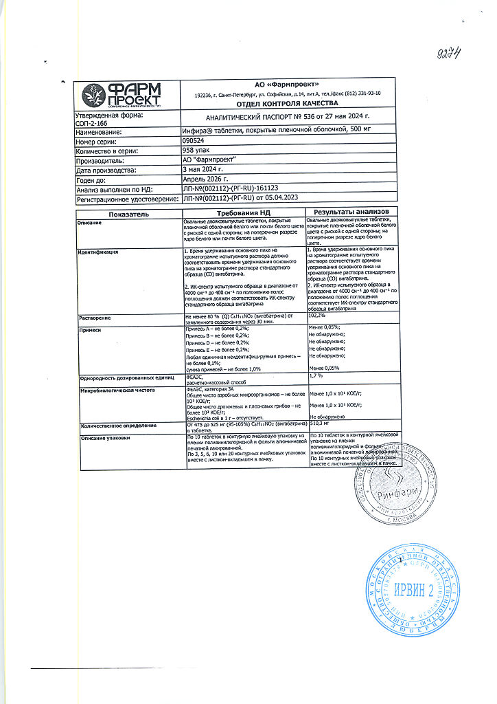 Документы Инфира таблетки покрыт.плен.об. 500 мг 100 шт
