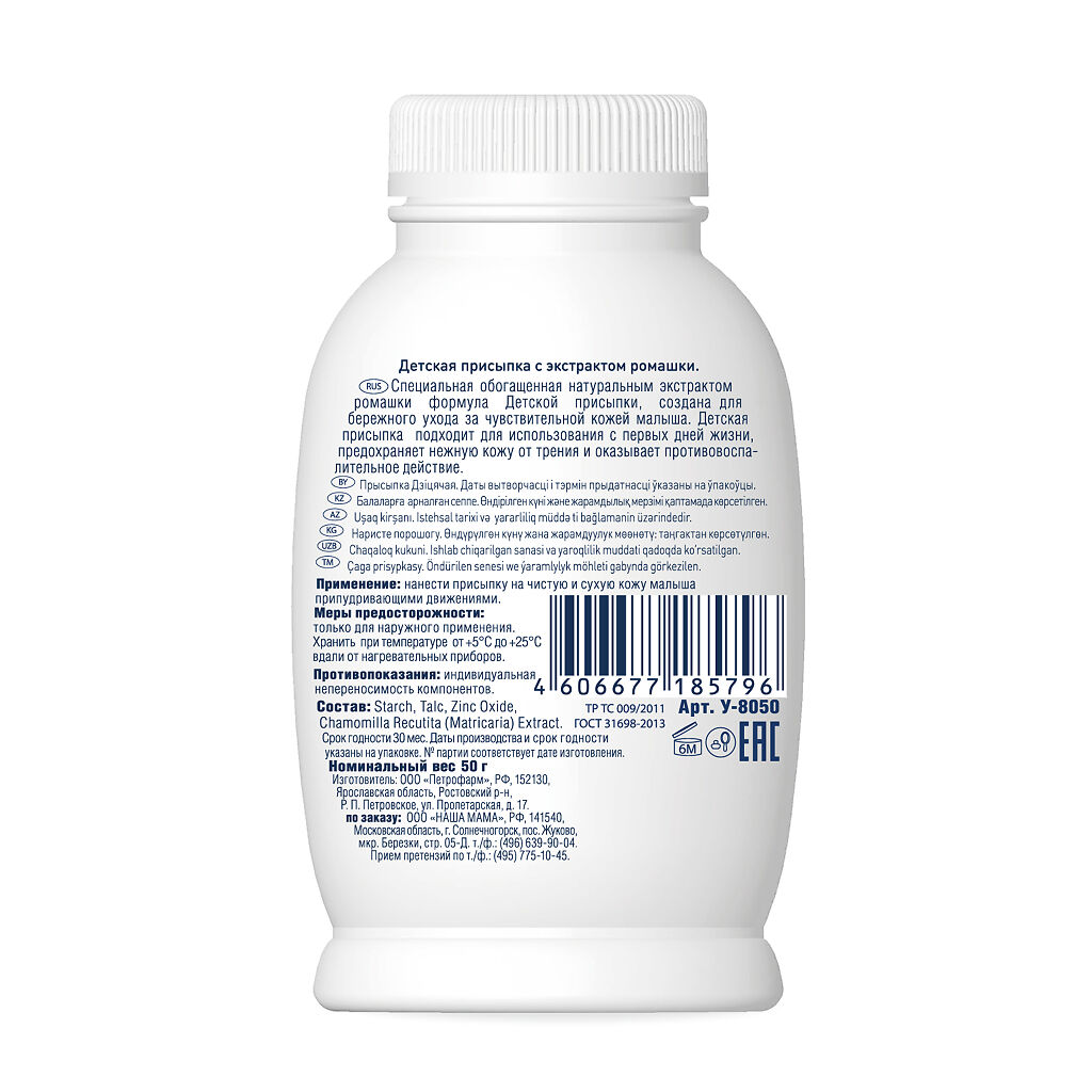 Специальная обогащенная натуральным экстрактом ромашки формула Детской присыпки, создана для бережного ухода за чувствительной кожей малыша. Детская присыпка подходит для использования с первых дней жизни, предохраняет нежную кожу от трения и оказывает противовоспалительное действие. Рекомендации: хорошая переносимость «Детской присыпки» подтверждена клиническими испытаниями в аккредитованных лабораториях. Продукт может быть использован в детской педиатрической практике для гигиенических процедур у детей в лечебно-профилактических учреждениях : родильных домах, перинатальных центрах, отделениях неонатологии, акушерских стационарах и в быту. Специальная обогащенная натуральным экстрактом ромашки формула Детской присыпки, создана для бережного ухода за чувствительной кожей малыша. Детская присыпка подходит для использования с первых дней жизни, предохраняет нежную кожу от трения и оказывает противовоспалительное действие. Рекомендации: хорошая переносимость «Детской присыпки» подтверждена клиническими испытаниями в аккредитованных лабораториях. Продукт может быть использован в детской педиатрической практике для гигиенических процедур у детей в лечебно-профилактических учреждениях : родильных домах, перинатальных центрах, отделениях неонатологии, акушерских стационарах и в быту.