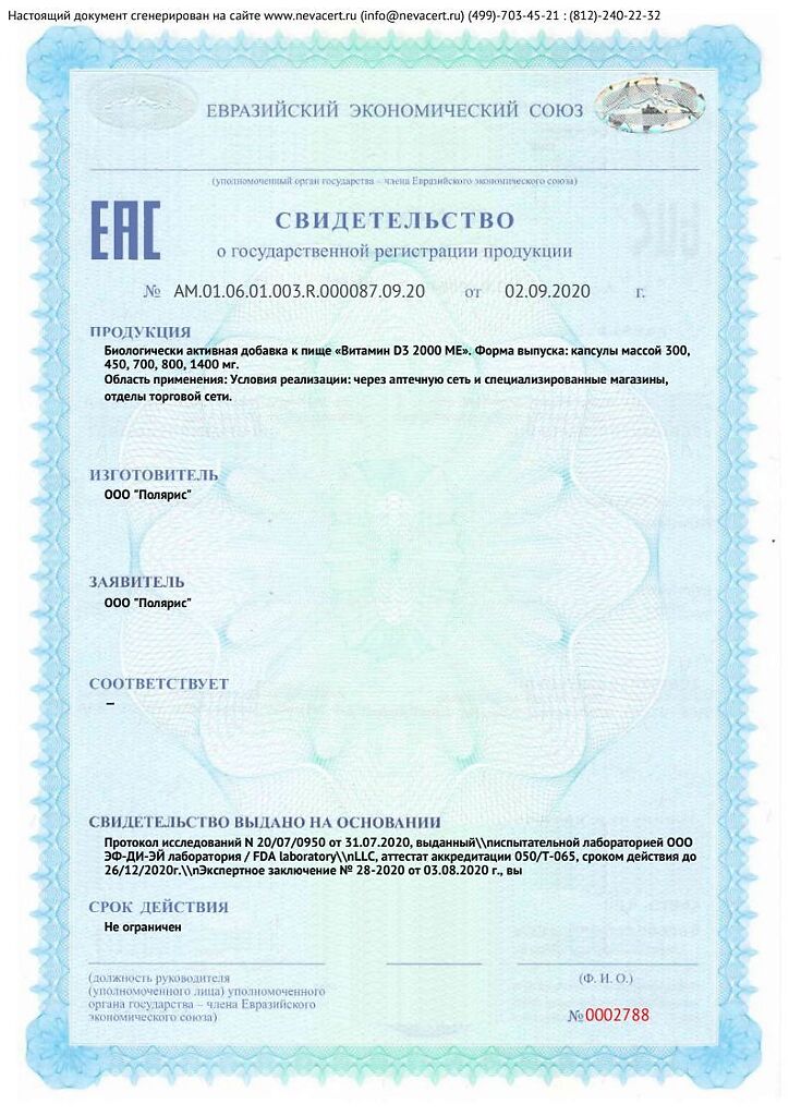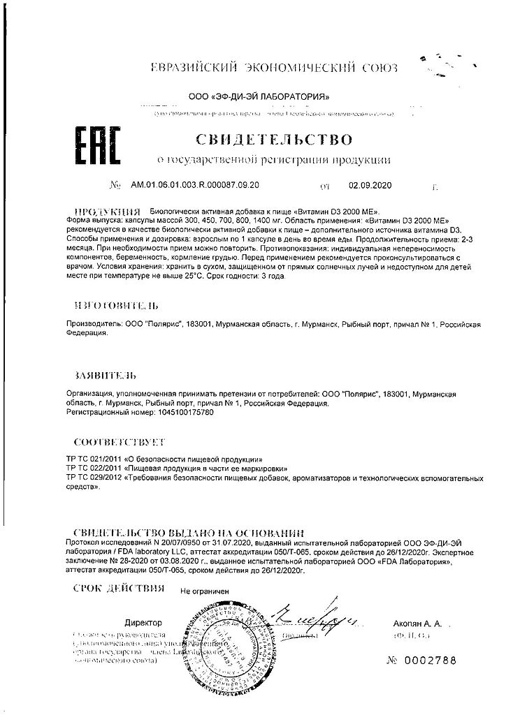 Документы Витамин D3 2000 МЕ капсулы массой 700 мг 60 шт