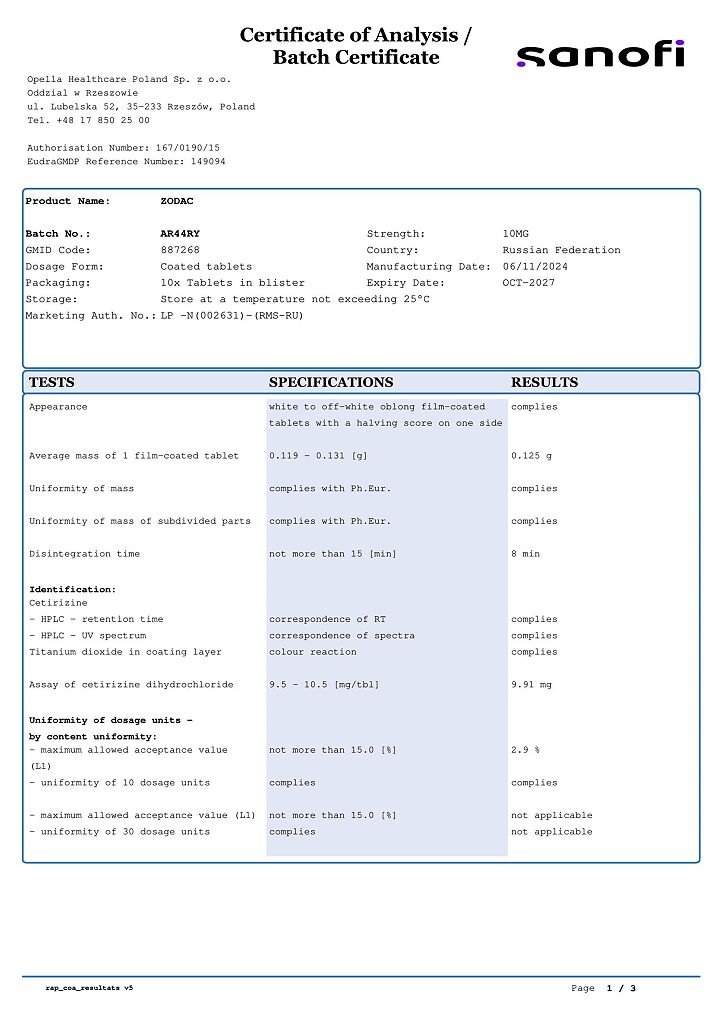 Зодак таблетки покрыт.плен.об. 10 мг 10 шт: отзывы покупателей и фармацевтов